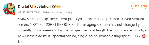 The tipster also claimed that the phone offers a one-inch main camera and dual-periscope cameras with a Hasselblad multi-spectral sensor. Digital Chat Station adds that the focal length of the cameras has “not changed much.”