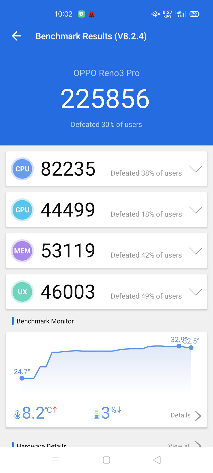 If you are interested in benchmarks, the Reno 3 Pro scored 225,856 on AnTuTu V8.2.4 and 398/1509 for Geekbench 5 single-core/multi-core.
