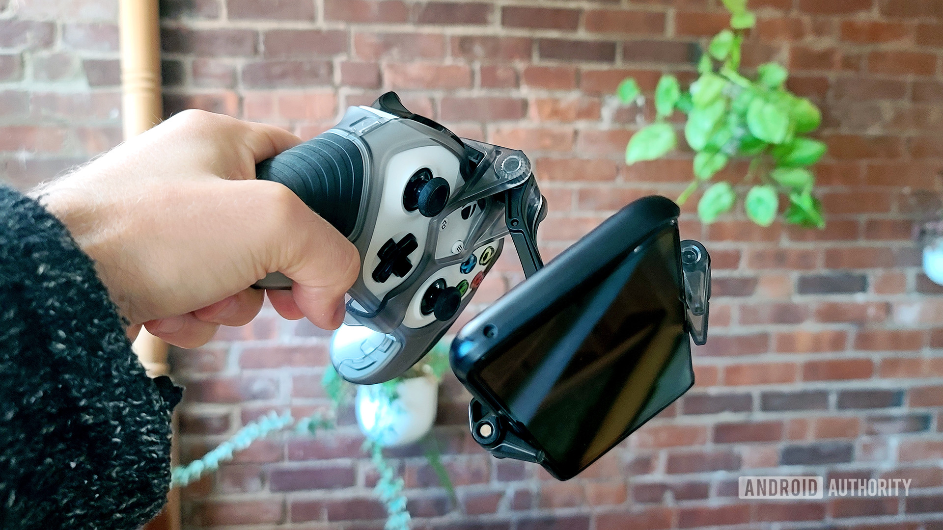 The second is that the arm mechanism that attaches the system to the controller has a flap you can pull up and snap down to lock the arm in place. This is a step up from the usual crank-and-lock systems we see on competitor devices. With this, you can quickly adjust your view of your phone and get right back to gaming.