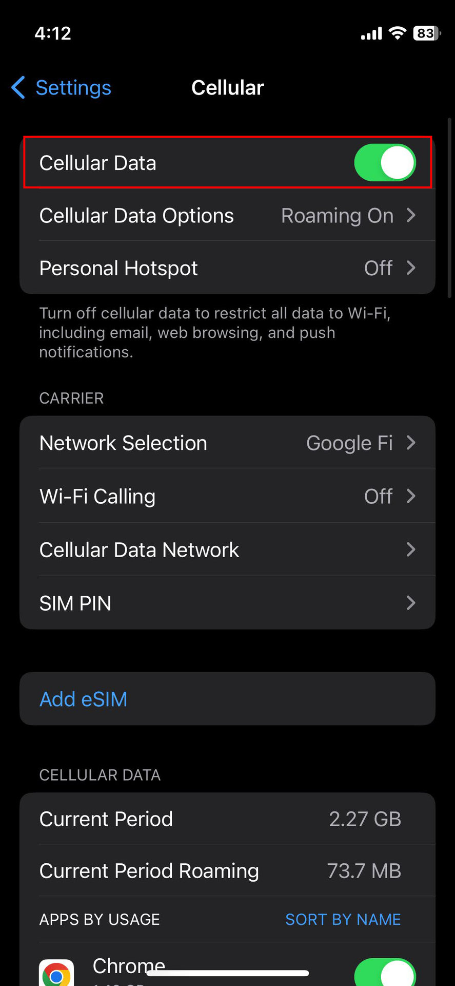 - Make sure Mobile Data is toggled on.