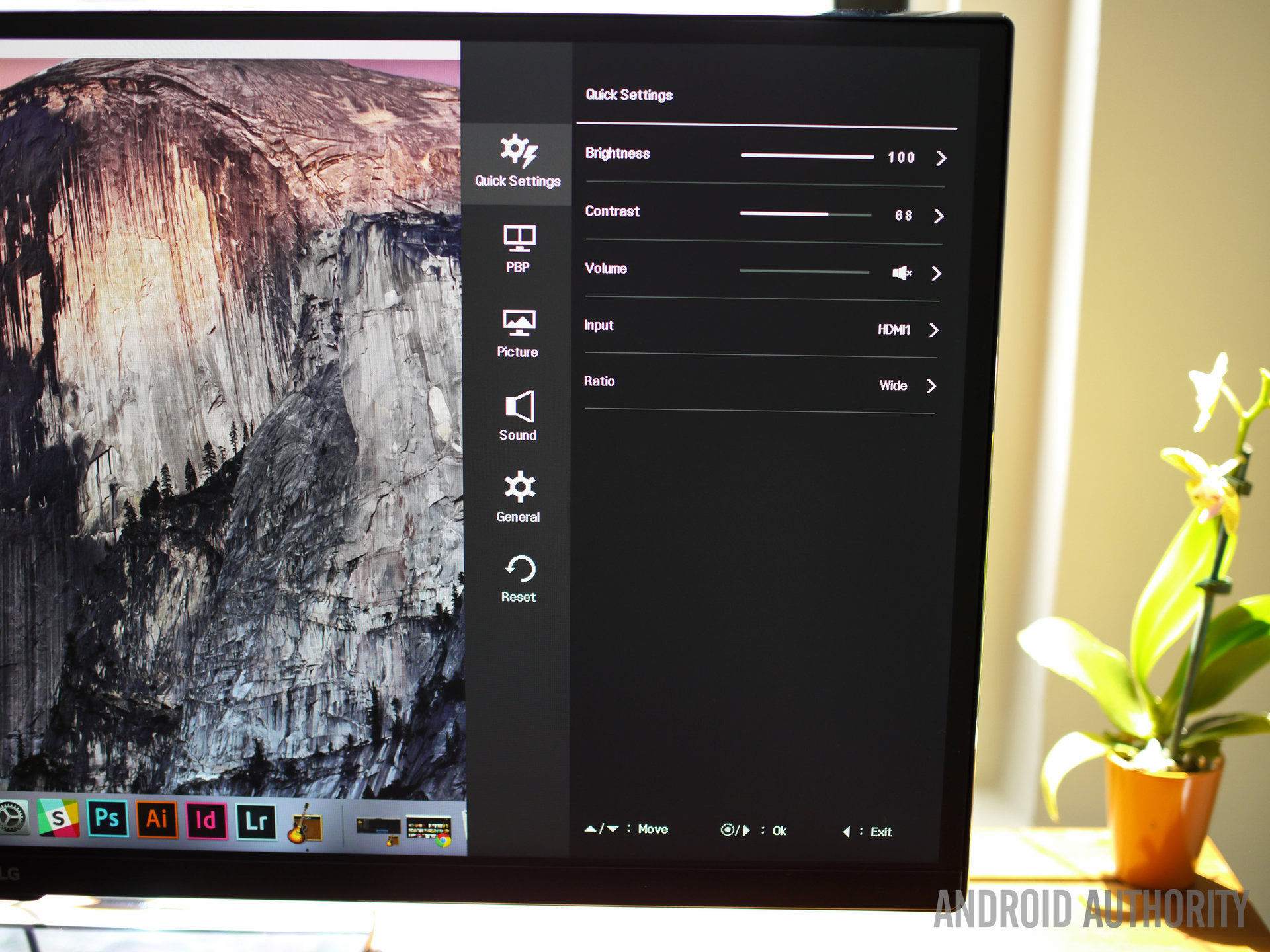 The monitor features an IPS panel with a 2560 x 1080 resolution, and a 21:9 aspect ratio. It is a beautiful display, and can get quite bright too. All the extra screen real estate can help a lot with multi-tasking, with the ability to put apps or programs side by a side. It’s wide screen nature also makes running programs with lots of small pop ups and windows appear less cluttered and organized. For example, programs like Photoshop, Illustrator, or video editing tools like Final Cut feel a lot cleaner when the pop up menus and windows don’t clutter your work space.