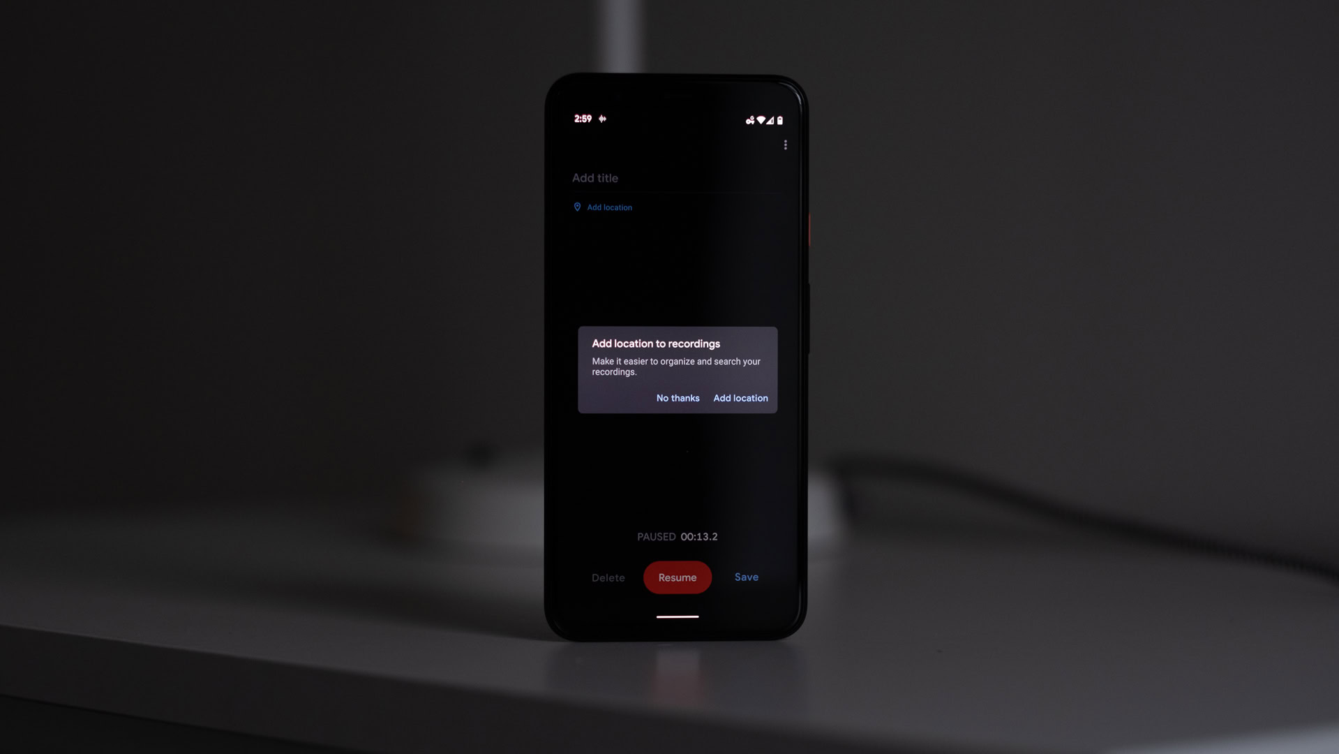 Launch the Pixel 4 recorder app. When you open it for the first time, it will ask you if you want to enable location tags for recordings. I hit accept because being able to search by location is really useful for me. After this, you’re ready to start recording.