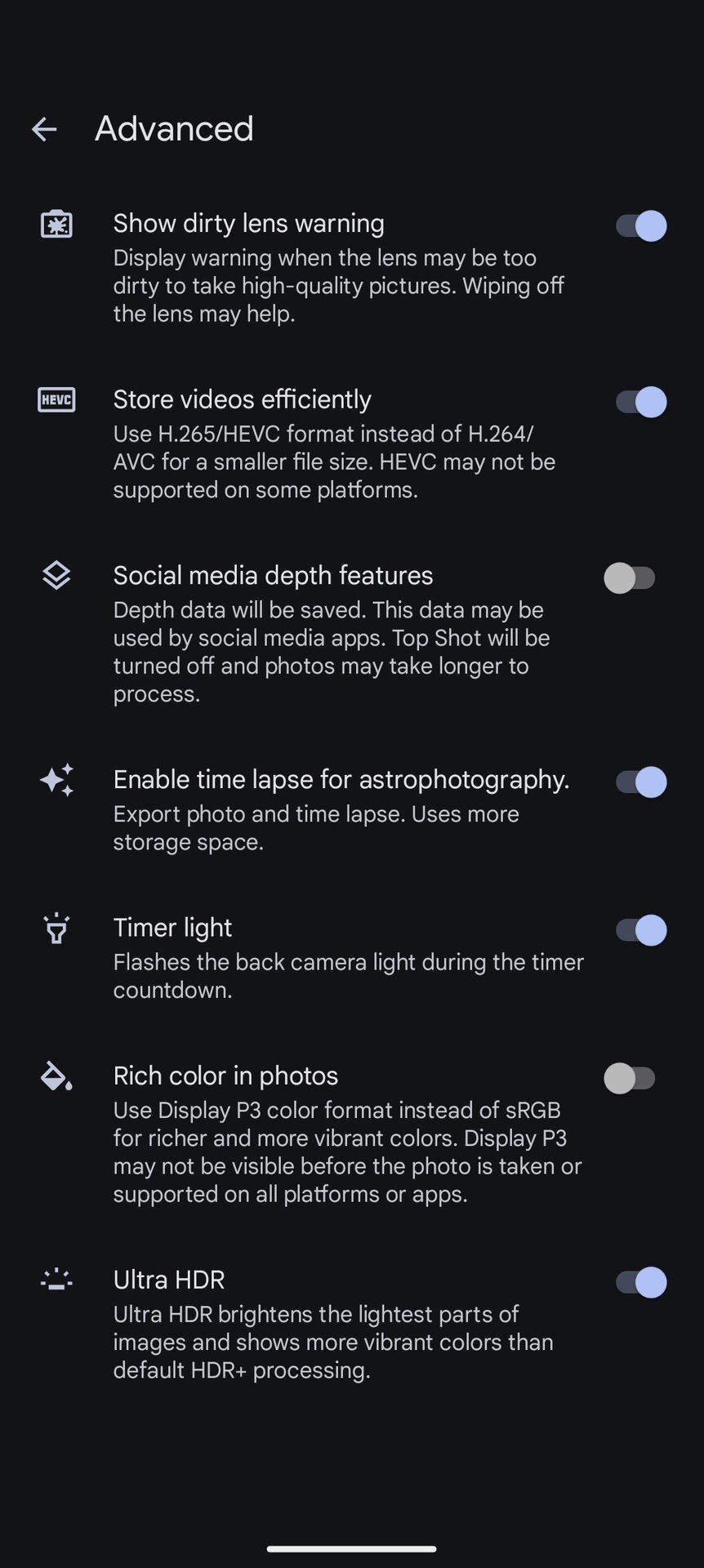Further, the “Palm Timer” feature can now be customized, with settings for “Always on” and “Only when the timer is active.” There is also now a separate switch for Ultra HDR photos in Advanced Settings. We could get these features working on our Pixel 8 Pro by sideloading the APK.