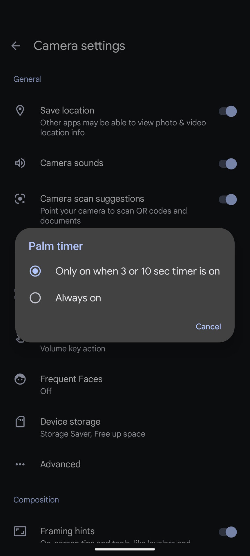 - Users can now set the Palm Timer feature to always be active, and Pixel 8 owners can now disable Ultra HDR.