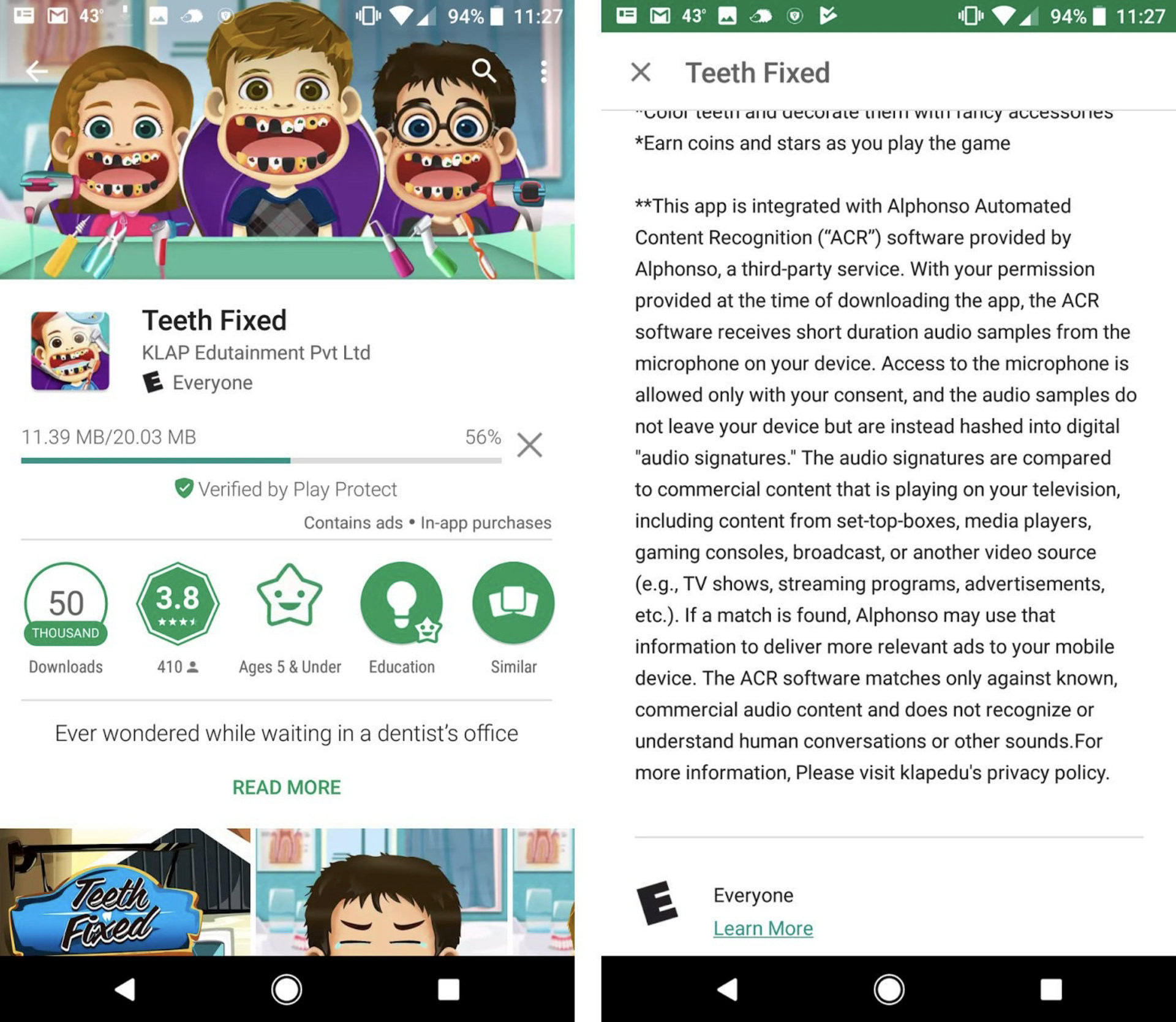As for the apps, they used the microphones in smartphones and tablets to pay attention for “audio signals,” which let the software know when someone is watching a particular TV show, movie, or ad. Even creepier, this happens whether games are in the foreground or background and whether games need or don’t need microphones to work.