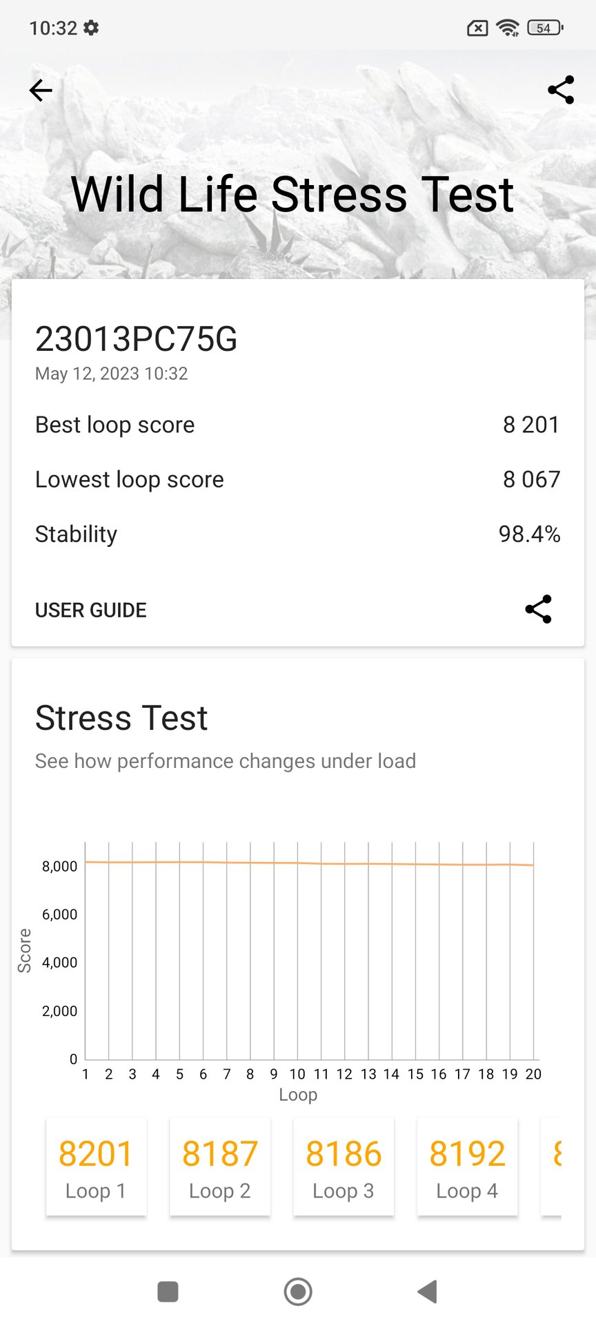 The POCO F5 Pro isn’t using the latest and greatest Snapdragon 8 Gen 2 processor, but you’re still getting a very powerful chipset here courtesy of 2022’s flagship-level Snapdragon 8 Plus Gen 1. So don’t be surprised when I tell you that benchmark scores are largely in line with 2022 flagship phones. The 3DMark Wild Life Stress Test in particular delivers a rock-solid 98.4% stability, suggesting that long gaming sessions aren’t a problem. The phone also got warm in this stress test, but it never got hot.