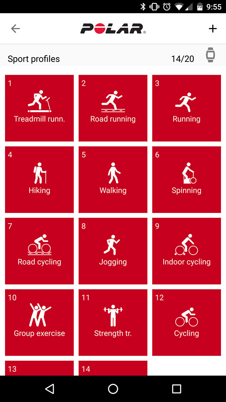 Before you take the M600 out for its first workout, we recommend opening up Polar Flow and navigating to the Sport Profiles section. This is where you’ll be able to load up to 20 different sport profiles on your M600 to select before you start working out. You can ‘only’ load 20 onto your device at one time, but there are over a hundred to choose from. Some of the most common Sport Profiles are running, hiking, walking, spinning, road cycling, jogging, indoor cycling and strength training. It can also track other sports like baseball, hockey and football, too.