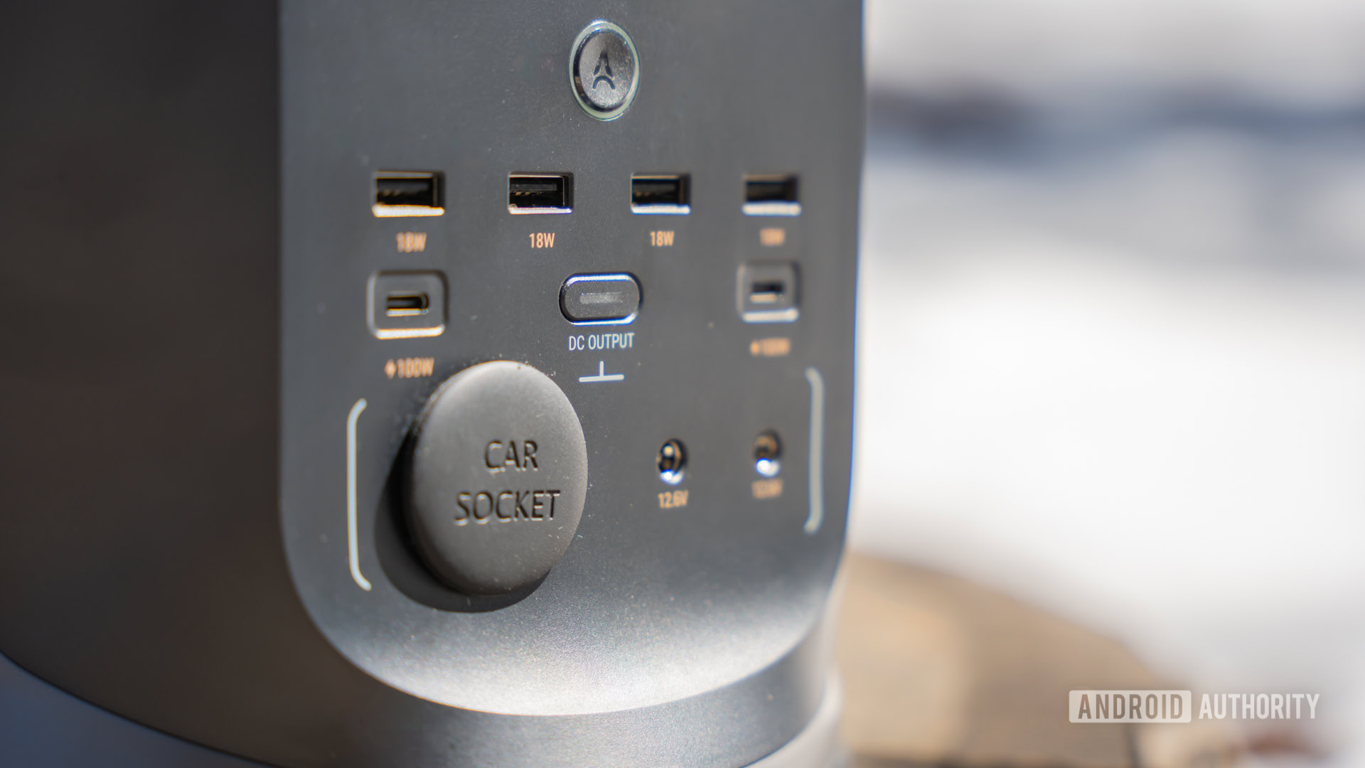 If you want to use it to juice up smaller devices, it has four 18W USB-A ports up here, and both of these USB-C ports can reach 100W. That’s enough to fast-charge pretty much all smartphones. It can also power most tablets and laptops, even if not always at top speeds. And there’s a car socket too, as well as the DC inputs.