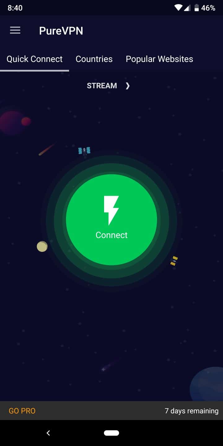 The PureVPN Android app has received the same redesign as well. The PureVPN Android app can be downloaded from the Google Play Store here. The Android app is basically an easier to use version of the Windows app. It starts with the same “modes” page. Once you select one, you can tap the large “Connect” button and the app will automatically choose the best server for you.