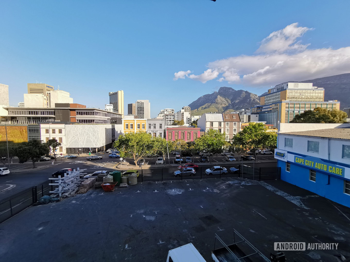 The LG V40 went for a triple-camera setup with more versatility on paper. LG’s phone delivered a 12MP main camera, a 12MP 2x telephoto snapper, and a 16MP super-wide angle shooter. A solution like this means you have three drastically different perspectives in one phone, as seen below.
