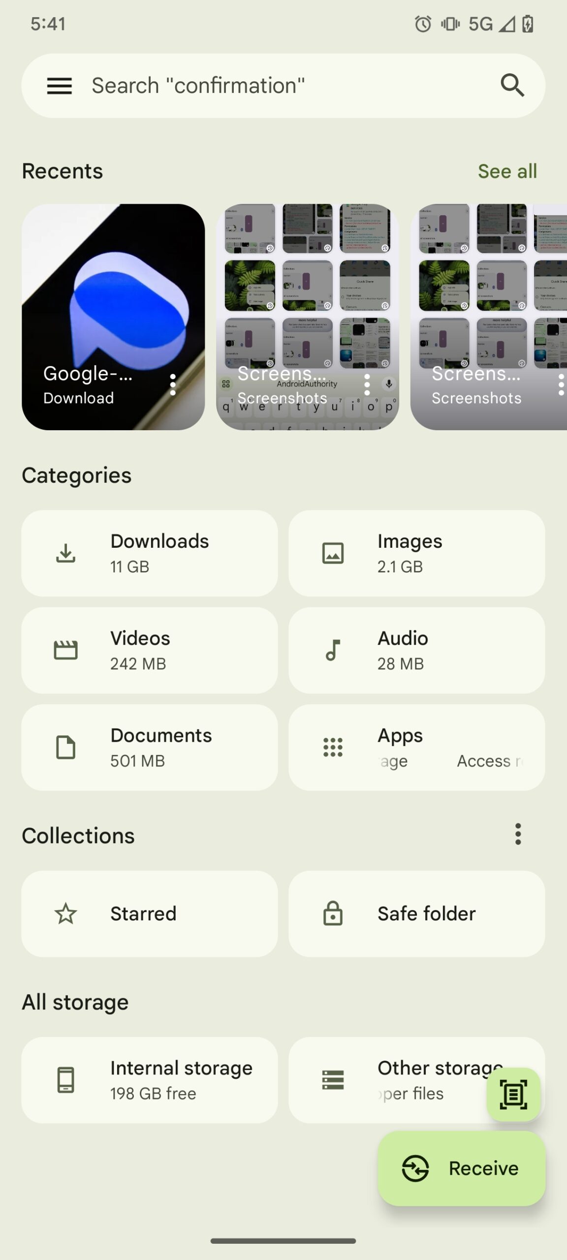 However, the new functionality takes users directly to a “Ready to receive” dialog. This dialog lets users select files they wish to send immediately, kicking off the sharing process much sooner than before. Notably, the same dialog appears when tapping the Receive button in the Files by Google app. The Select files to send button, when tapped, also opened our default Android file picker.