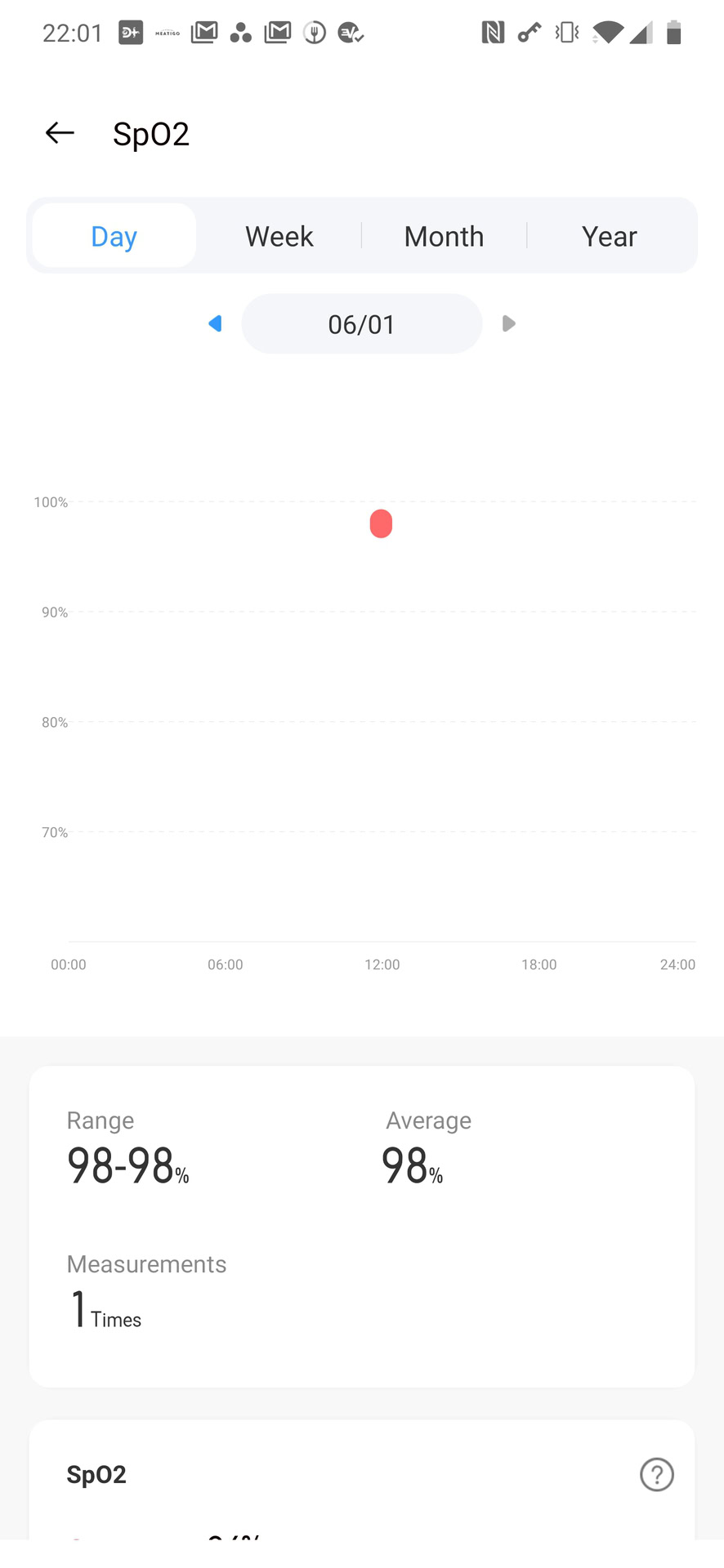 Another advertised feature is the ability to track blood oxygen levels (SpO2). The only way to capture this data is to trigger it manually. I do not have the means necessary to measure the efficacy of the data and, given the rest of the hardware’s performance, I wouldn’t take the results at face value.