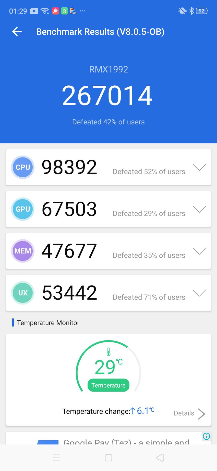 Benchmark results show excellent performance for a mid-ranger. In the CPU-centric AnTuTu benchmark, the phone scores 260714 points, which puts it well ahead of the 228519 points scored by the Redmi Note 8 Pro. The realme X2 also does well in the GPU-focussed 3D Mark benchmark, where it managed 2408 points.