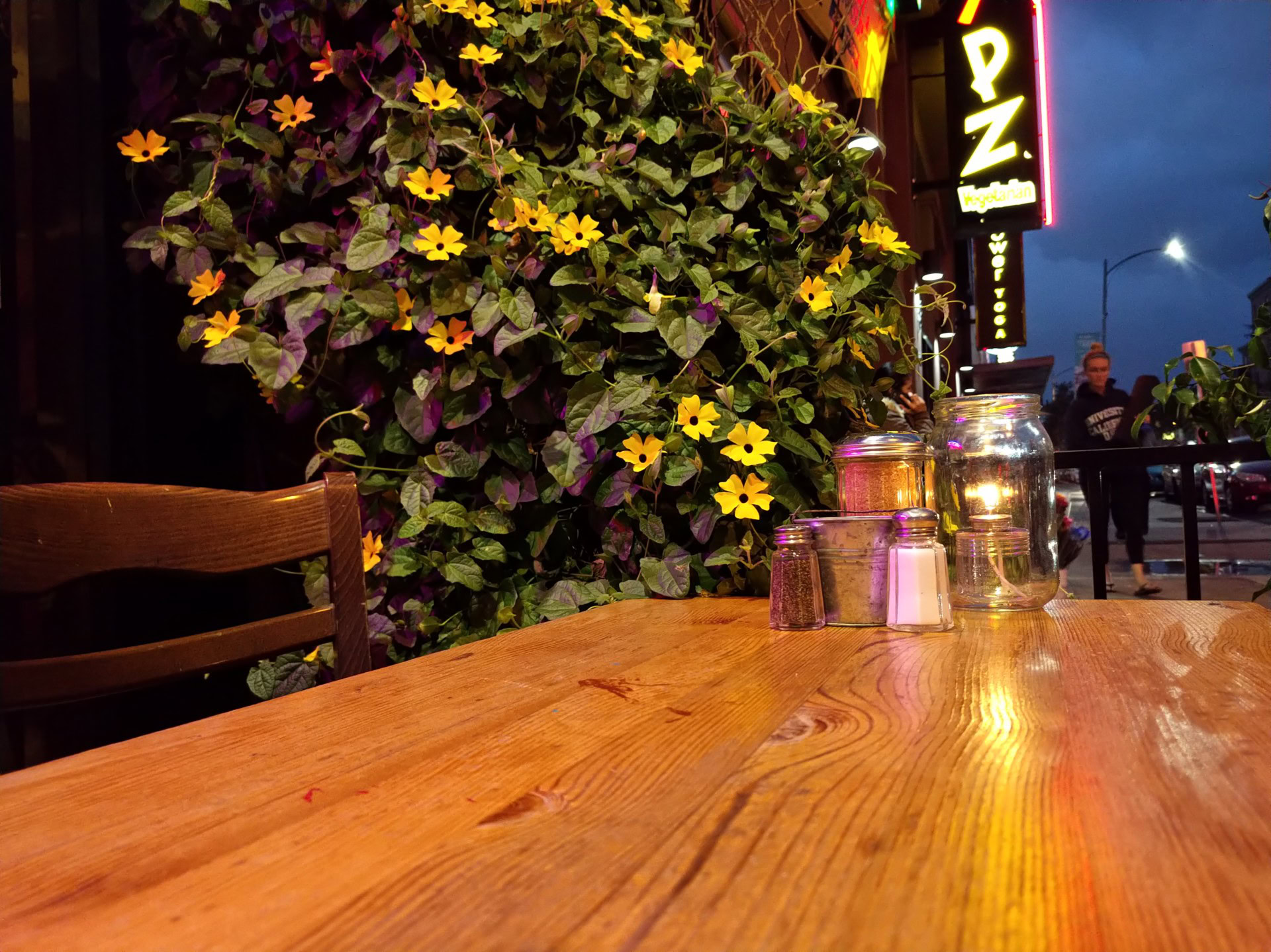 The image of the table and flowers did a bit better. You can notice individual grains of pepper and sugar in the shakers. The salt looks like a mush, but getting that right is asking a lot of a smartphone camera. Direct your attention to the plants and you can see detail in the foliage as you zoom in.