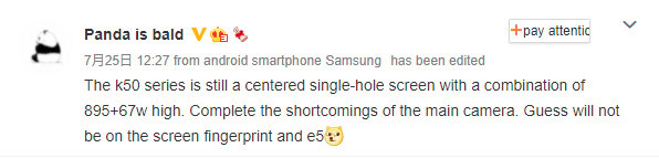 Now, Weibo leaker Bald Panda has claimed that the Redmi K50 series will offer a Snapdragon 895 processor, 67W wired charging, and a center-mounted punch-hole cutout. You can view a screenshot of the machine-translated post below.
