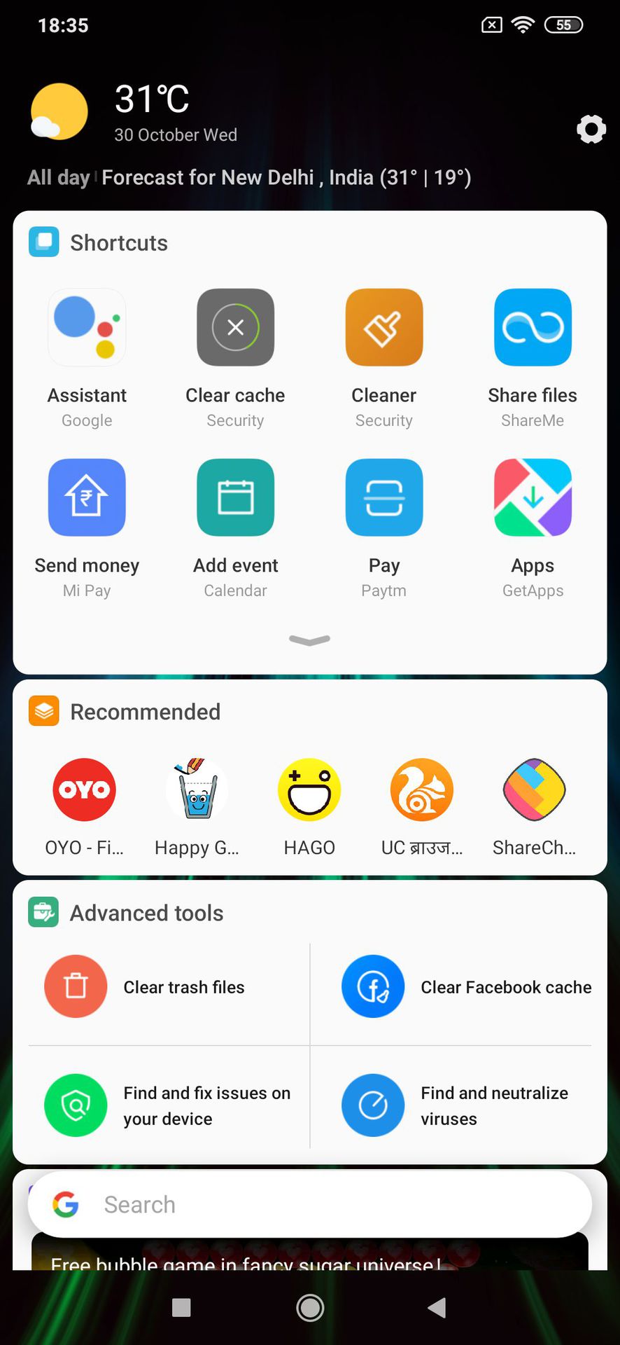 Even if you manage to avoid the initial recommendations, there are umpteen apps included on the phone. These range from MIUI standards, like a file explorer, weather app, and music app, but also includes a bunch of games, PayTM, Helo, and third-party music apps. A majority of these cannot be removed. Add to that the ads and app recommendations strewn across system apps, and it quickly becomes a sub-optimal user experience.