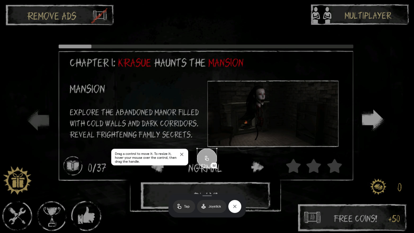 You can freely move, resize, and label all tap buttons and joysticks to create a fully customized gaming experience. Your control mappings are saved between sessions. To transfer them to another computer or share them with a friend, you can use the import/export tool in the game controls menu.