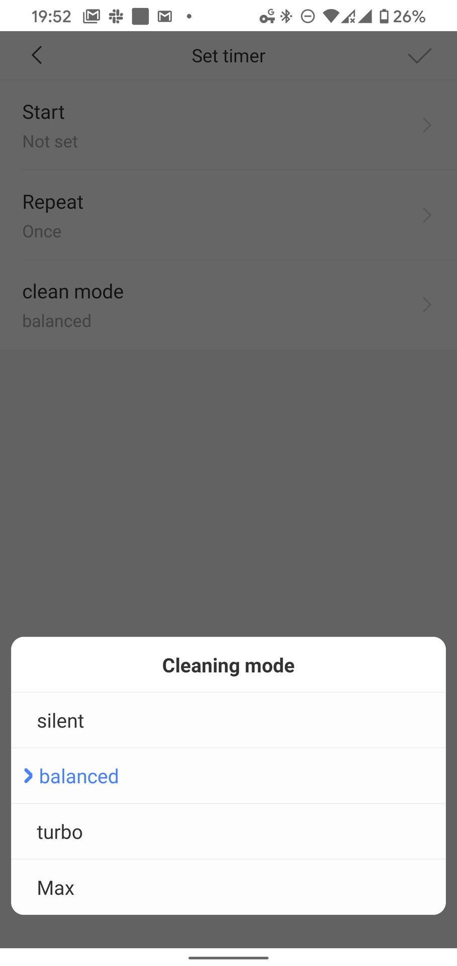 The Roborock S4 offers various cleaning modes for different vacuuming jobs. These consume more or less power and produce more or less noise depending on the task at hand. In the default balanced mode, the S4 hits a max of 59dB, similar to most floor-standing fans. You can also switch to silent mode or beef things up with max or turbo mode.