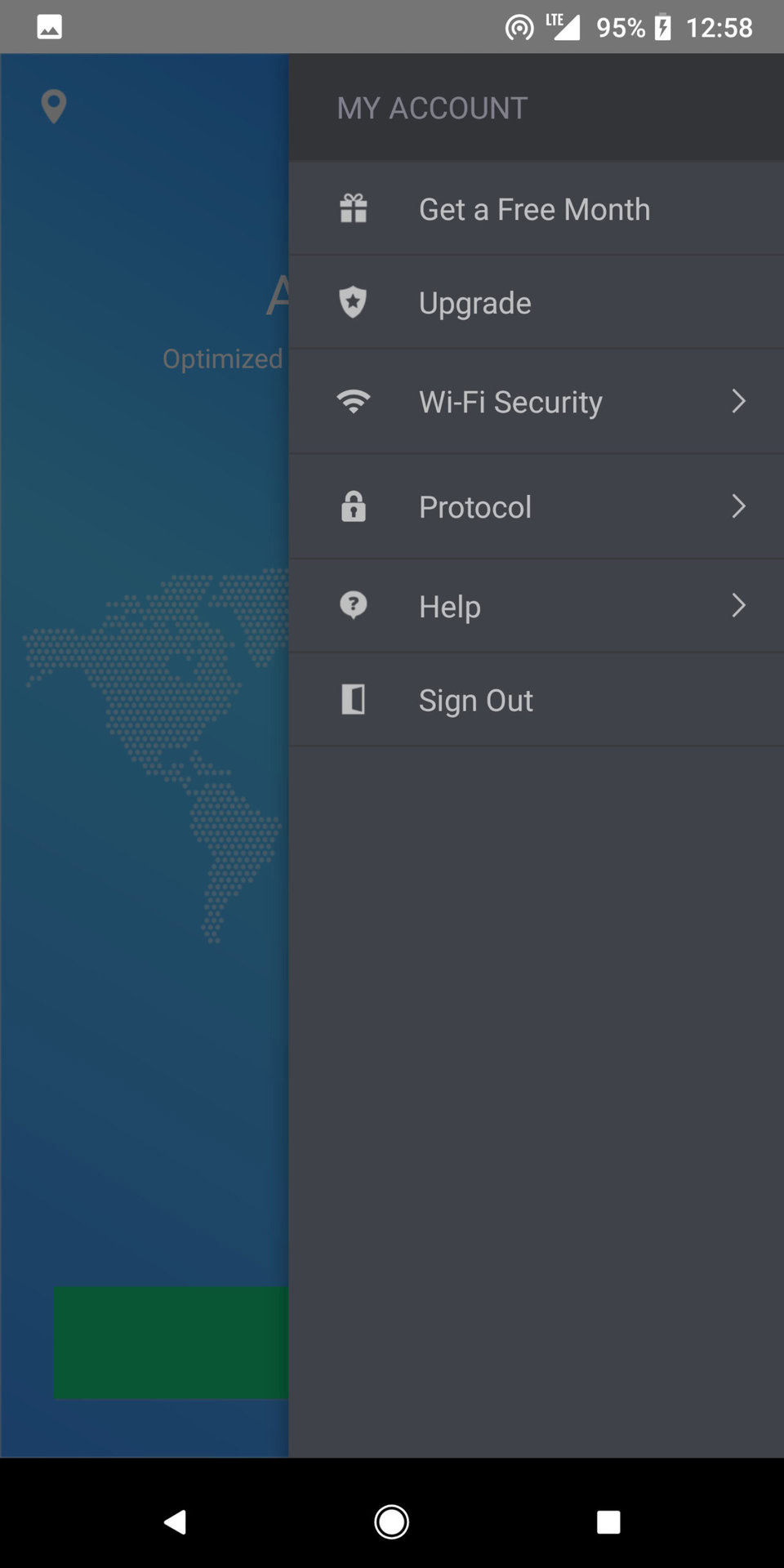 The user interface of the Android app is largely similar to the Windows app. The only noticeable difference is that the location icon has been moved to the top left corner. There is also no separate Settings menu. The hamburger menu lists the VPN protocol, Kill Switch, and Wi-Fi Security options instead.