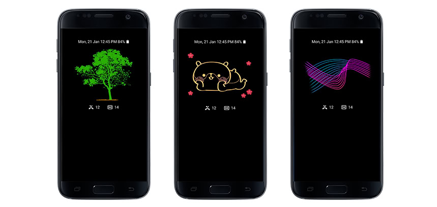 As per Samsung’s comments, the AOD “allows users to check the time and date with ease, and also keep an eye on missed calls and message alerts, even when the phone is not in use and just on standby. And, with its variety of clocks, calendars and themes, the AOD even offers customization options.”