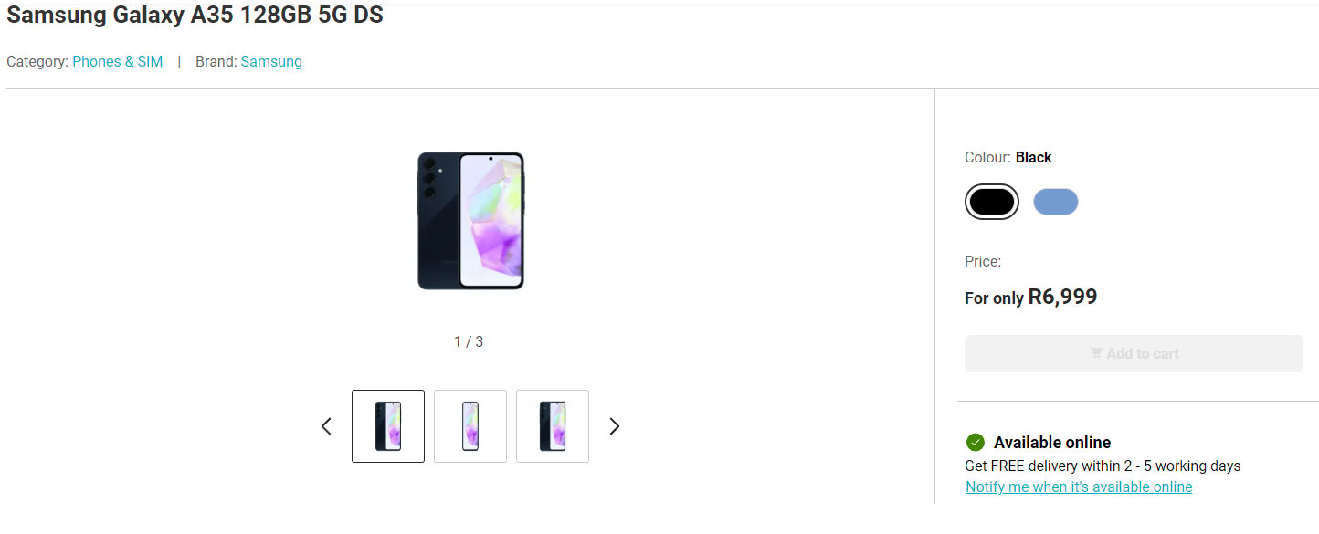 This isn’t the only Samsung partner to list the A35 and A55 today, as South Africa’s Vodacom network has also listed them for R6,999 (~$373) and R10,499 (~$560), respectively. Unfortunately, these phones are listed as out of stock right now. Check out the gallery above.