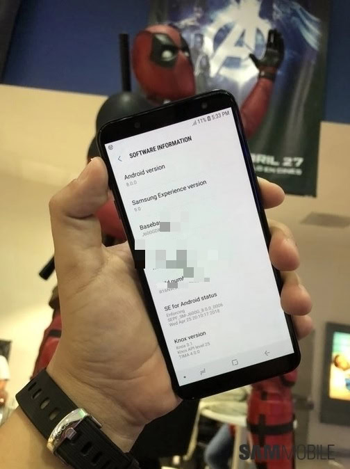 The hands-on photos also confirm that the device will run Android 8.0 Oreo out-of-the-box (skinned with Samsung Experience 9.0), and feature a micro-USB port and headphone jack.