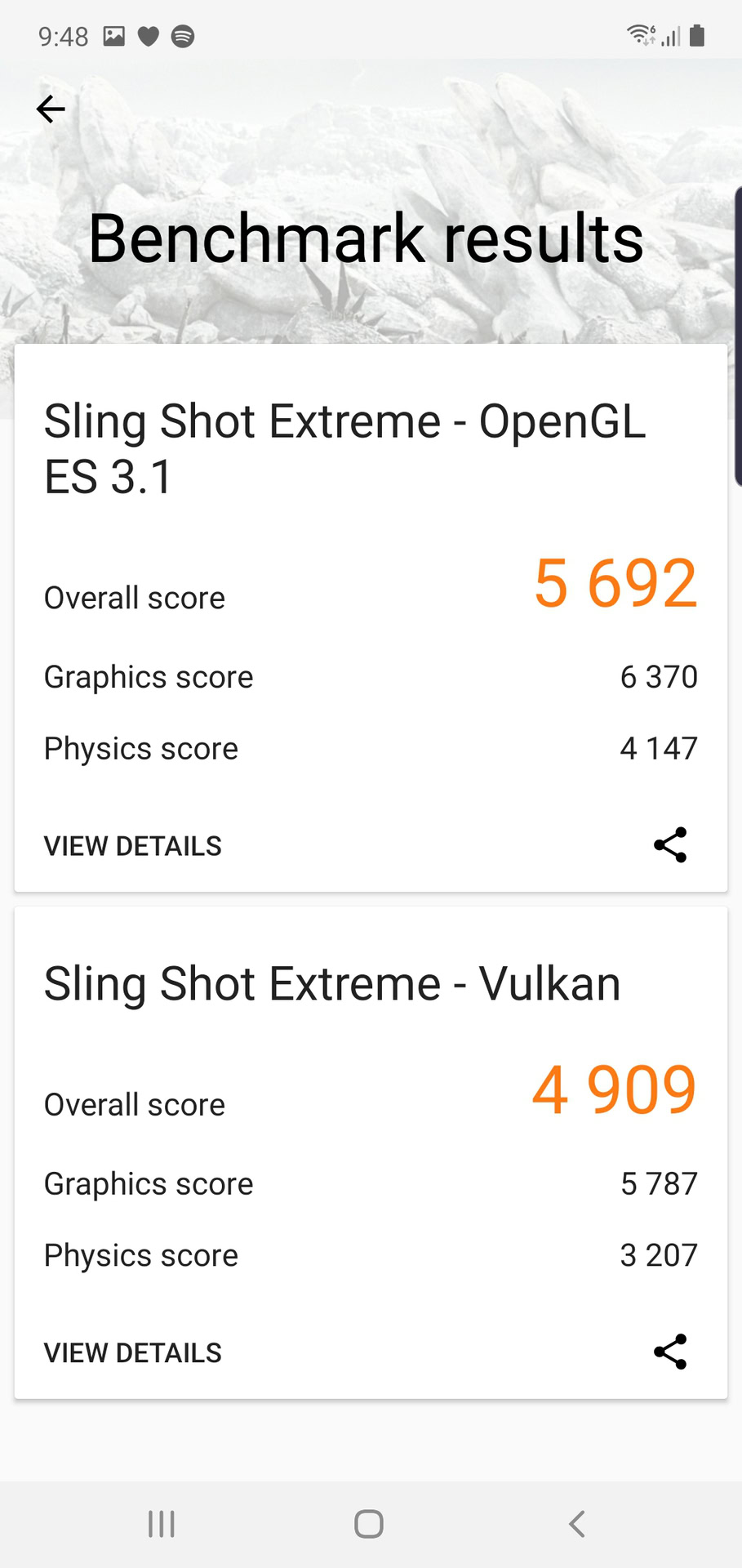 In benchmarks, the Galaxy Note 10 Plus scores well. It achieved a score of 369,029 in AnTuTu, compared to the 360,414 on the Galaxy S10 Plus. In 3DMark, it achieved a score of 5,692 compared to the S10 Plus’ score of 5,239. In Geekbench it nabbed 3,434 and 10,854 for the single-core and multi-core tests, respectively versus the 3513 and 11148 scores on the Galaxy S10 Plus. In Gary’s Speed Test G, the Samsung Galaxy Note 10 Plus finished the course in 1:30:381, besting the Galaxy S10 by about two seconds.