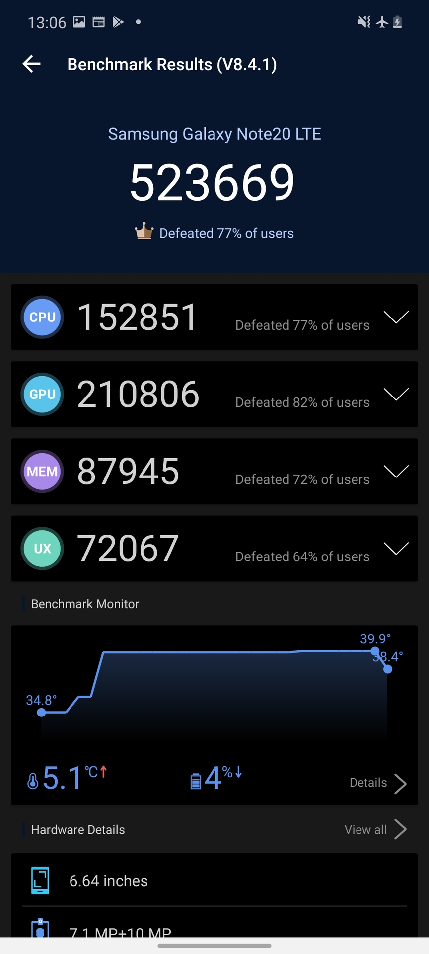 This all tallies with real-world use. While the Exynos Note 20 is technically underpowered, it never exhibited any lag or slowed down when I was zipping around menus or multitasking. Navigating around the phone can feel slow due to the 60Hz refresh rate, but the CPU proved to be a perfectly capable performer. It also ran every Android game I could think of, though it struggled to hit consistent frame rates when emulating GameCube games in Dolphin.