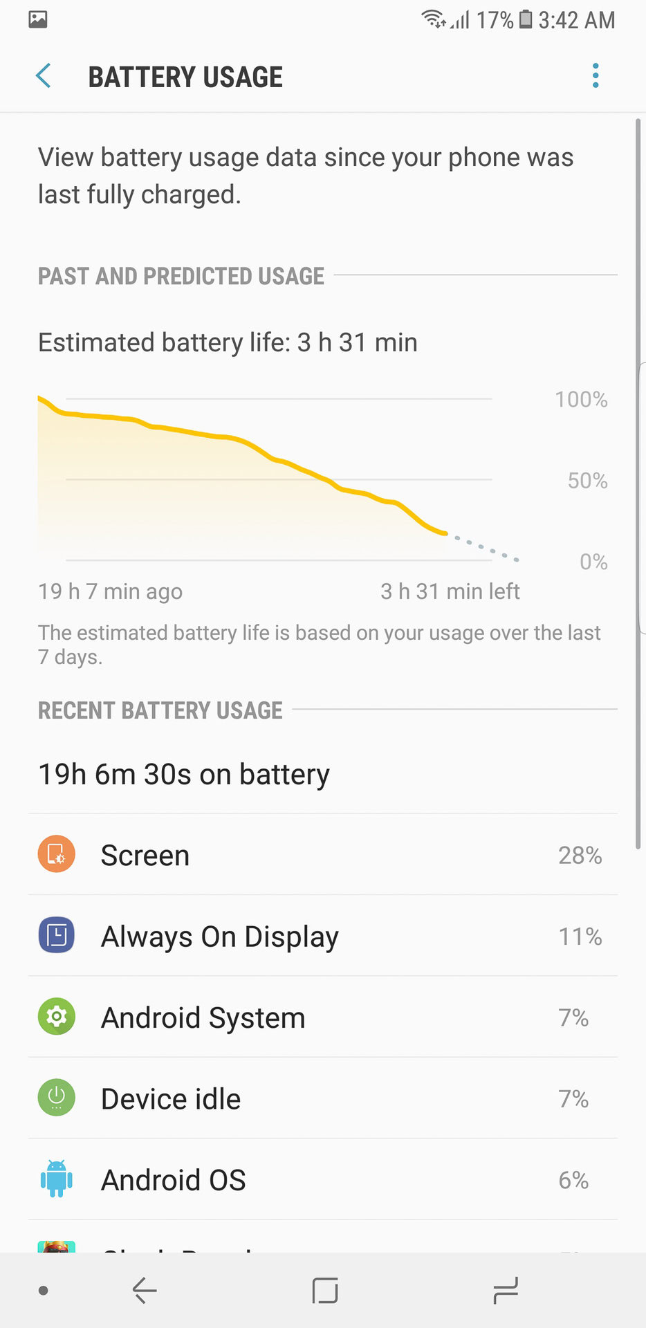 In my experience, battery life on the Galaxy Note 8 has been far better than anticipated. Screen-on time is typically around the five hour mark with anywhere between 15 to 18 hours off the charger allowing me to comfortably get through a full day.