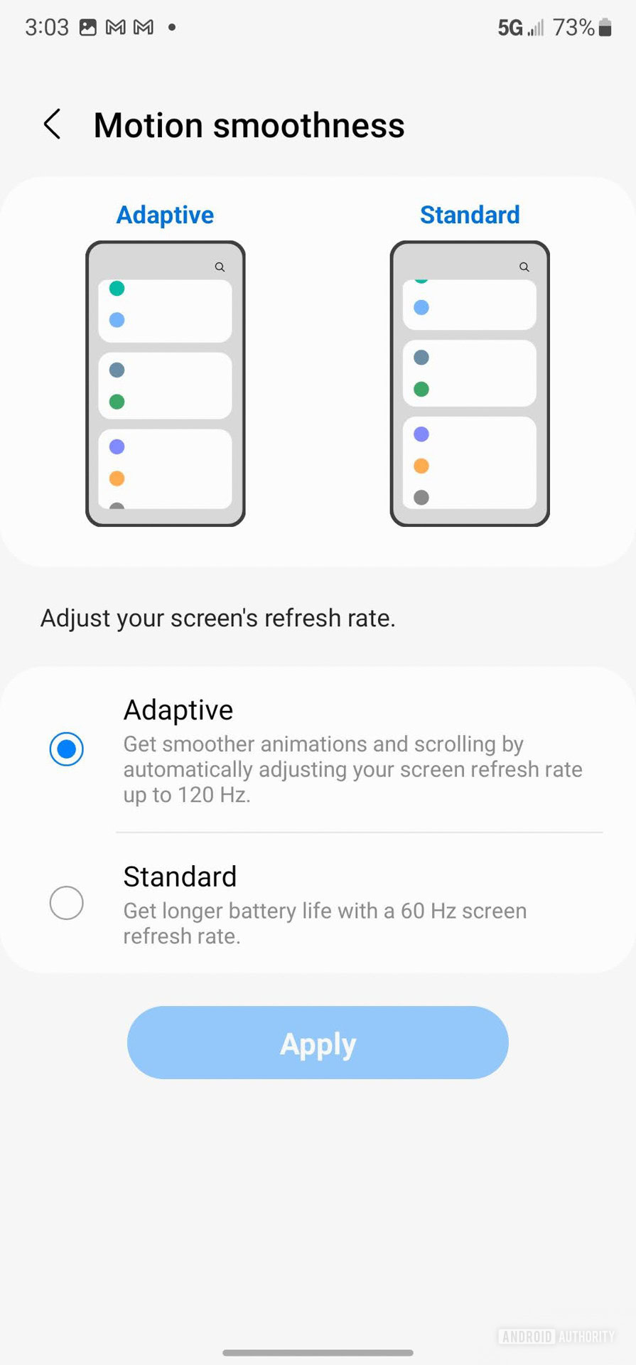 How does it all hold up? Well, it’s a dynamite screen. Out of the box, it’s set to FHD+ with the adaptive 120Hz refresh rate enabled. In this mode, it excels at everything. Your email and favorite websites look incredibly clean, your YouTube channels and social media stars are at their best, and high-quality movies are simply stunning. Changing the resolution to QHD+ or the refresh rate to a static 60Hz doesn’t produce much visual change that your eyes can see, except in certain circumstances, such as scrolling through menu screens.