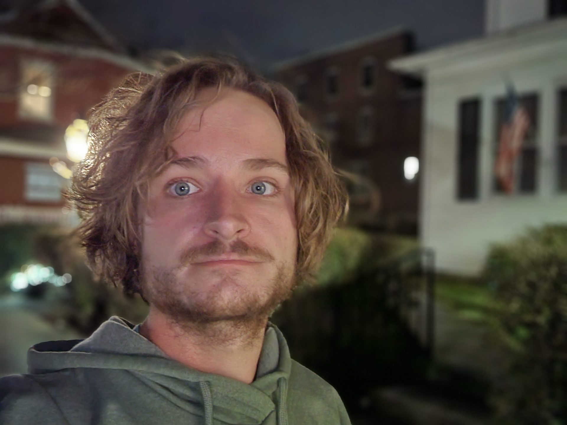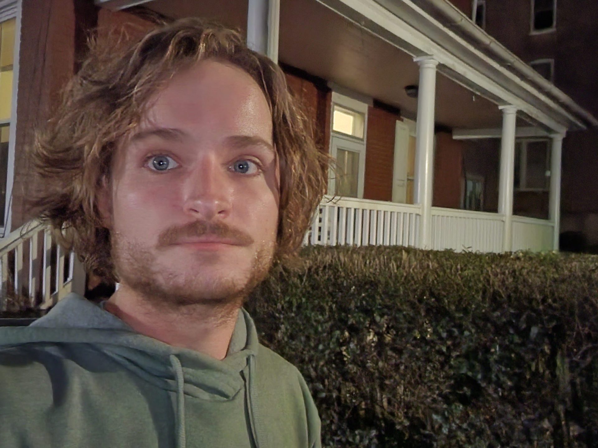 Samsung’s Galaxy S22 selfie camera isn’t up to the Galaxy S22 Ultra’s level, but it will still suit most people. I found that it captured enough detail any time of the day, though the night selfies picked up a little more grain. Both night selfies were taken away from streetlights, but the post-processing yields a good result. Much like what we discovered in our Galaxy S22 Plus testing, you’ll have to switch to a multi-person selfie for the full 10MP resolution — single-person selfies drop down to 6.5MP by default.