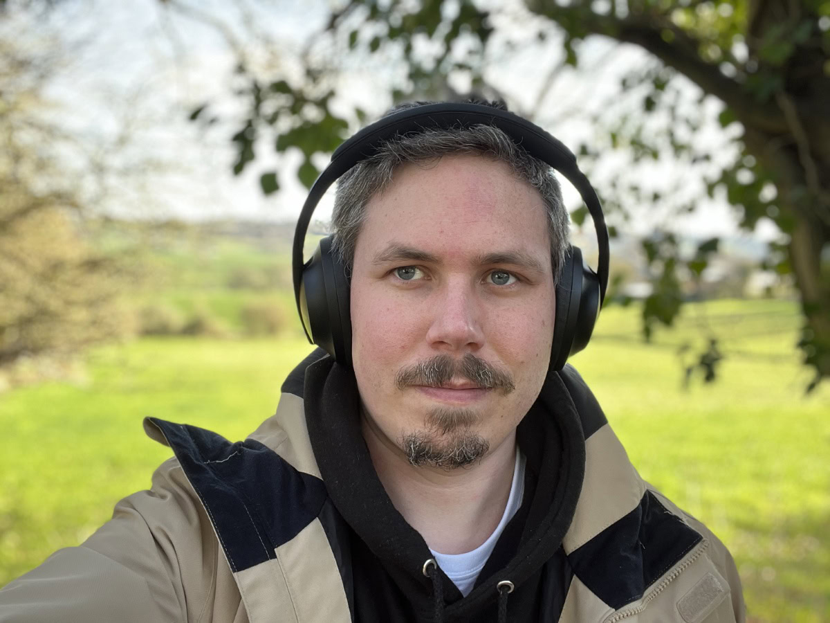 Shooting in the shadows is trickier for these cameras. The Pixel 6 Pro doesn’t blur the gap between my hair and headphones on the left. It’s also really punched up the green of the grass and made my face a little too orange. It’s a fine but not brilliant selfie. Apple has a similar issue with slightly too much saturation on the grass and it doesn’t quite handle the HDR backdrop as well. But it’s hard to argue with Apple’s skin textures — they’re very good.
