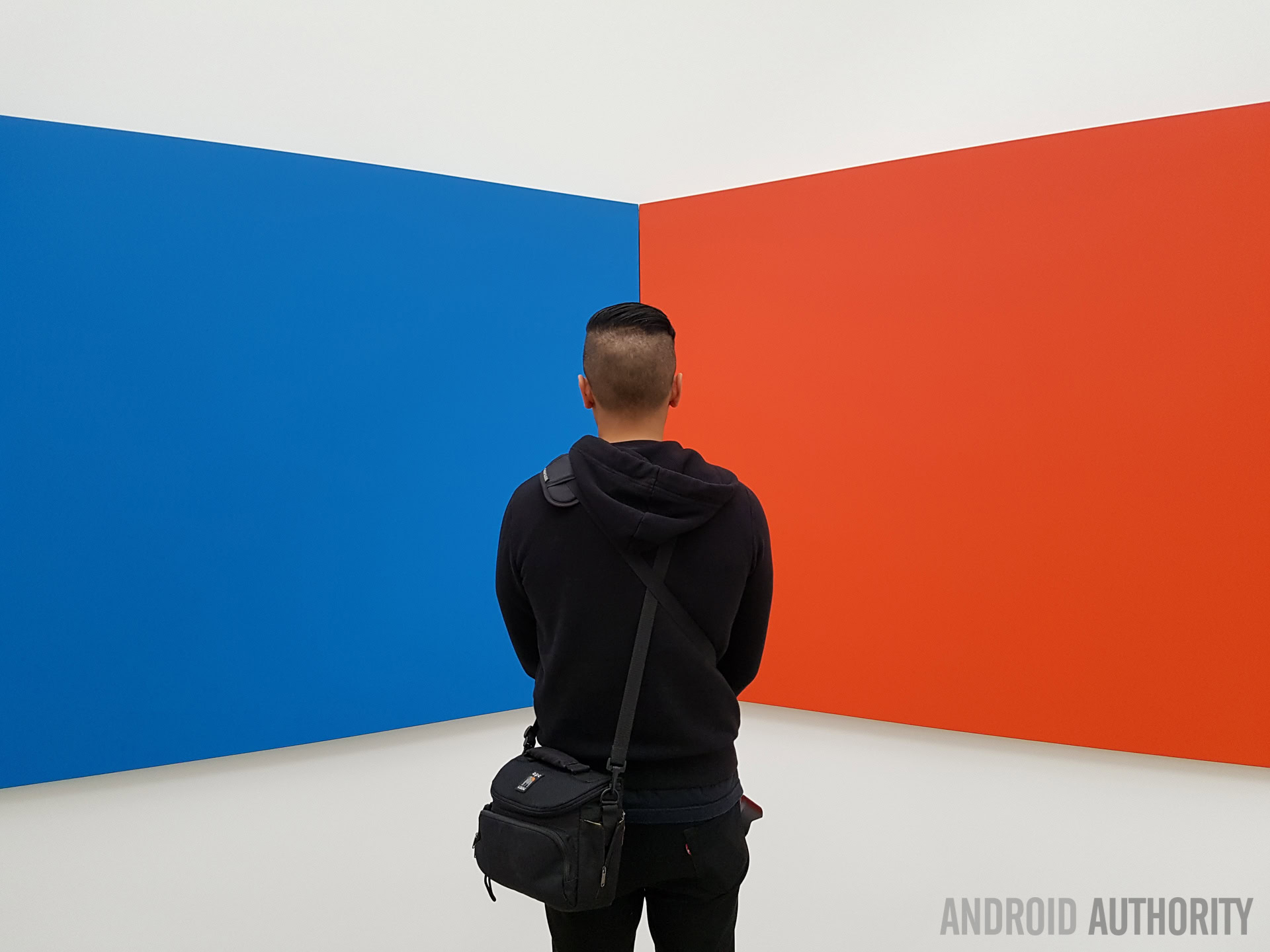 Things get more lit as you move to the top floor of The Broad Museum. I decided to take advantage of Panorama mode and things looked quite great. One thing to point out is that, in the picture below, the gentleman in the hat was walking as I was panning from right to left to take the shot. The Galaxy S7 was able to stitch him just fine. There are no deformed body parts or blurry spots to be seen.