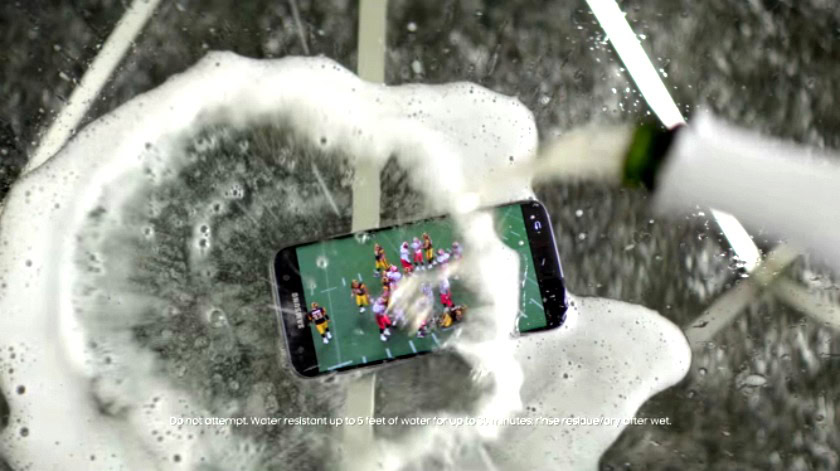 In the first commercial Lil Wayne impresses his friends with the champagne-resistant properties of the Galaxy S7. I can’t say I’ve tried this for myself, but if Lil Wayne says it on TV it must be true. The same phone takes a dunk in a fish tank just to demonstrate it is also water-resistant. Whuuut?