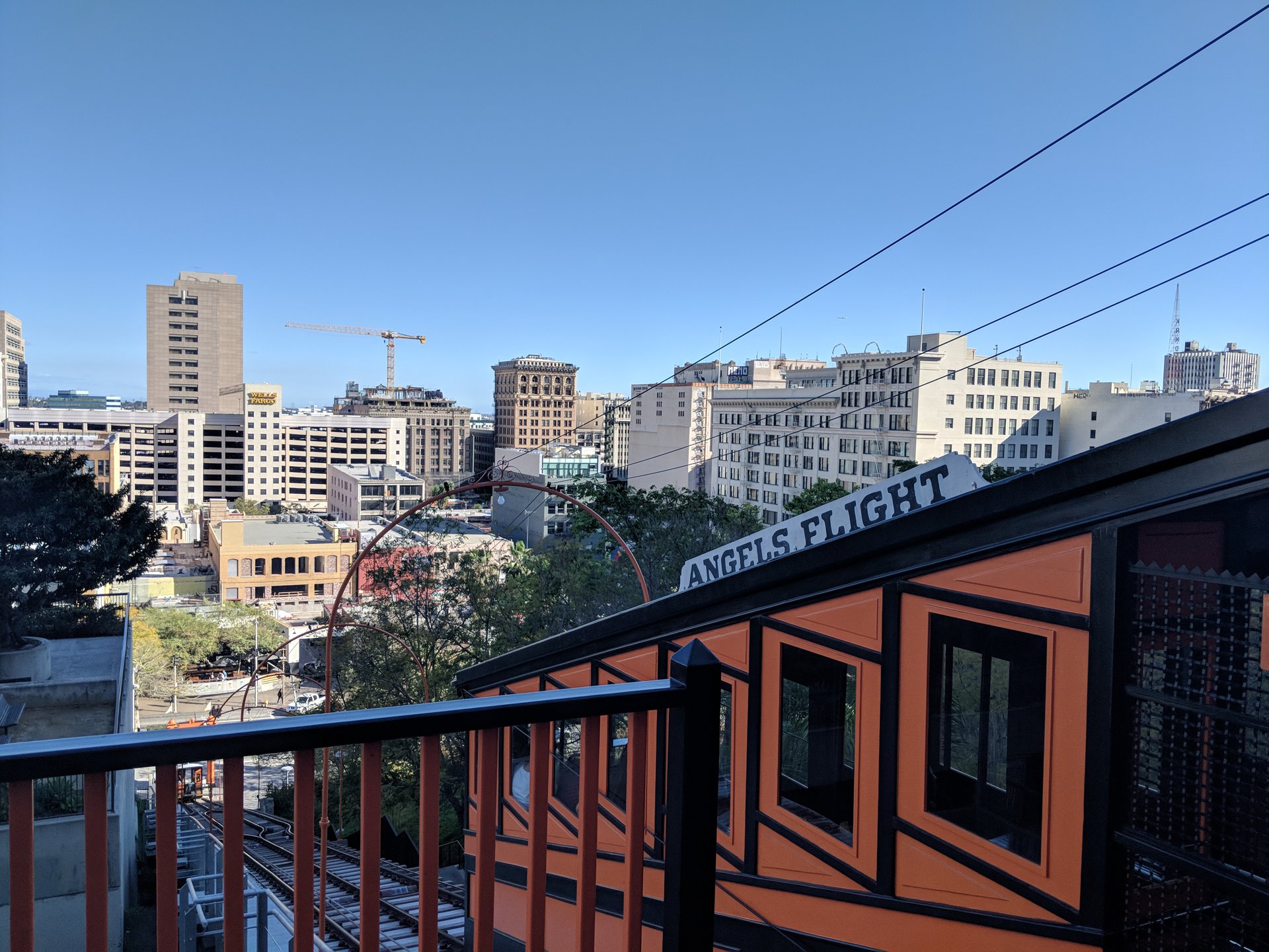 I would say the Samsung Galaxy S9 Plus did a better job exposing this image and bringing out the colors in the Angel’s Flight cart. It is not too saturated, nor does it have any weird elements. Even though the sun is very strong in the background, the phone manages to get accurate hues in the entrance, buildings, and plants. We can also see more details in the trees, grass, and entrance.
