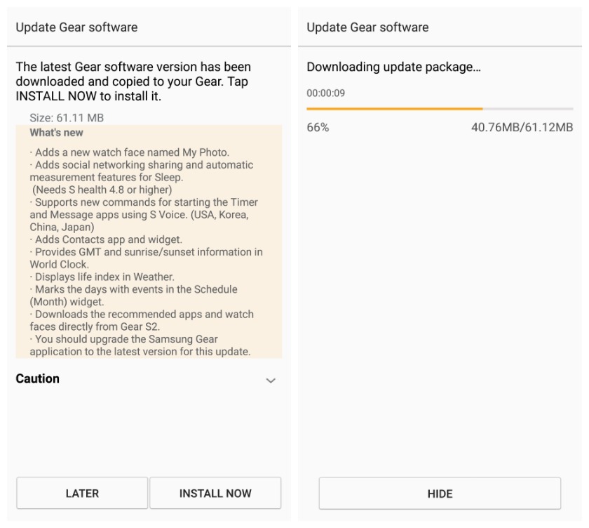 The update adds the ability to start a timer or launch Messages using S Voice and there’s a new Contacts app and widget. Finally, you’ll get a new notifications settings menu when you have no visible notifications. The update is rolling out now but you’ll need to make sure you have the latest version of the Gear app to get it.