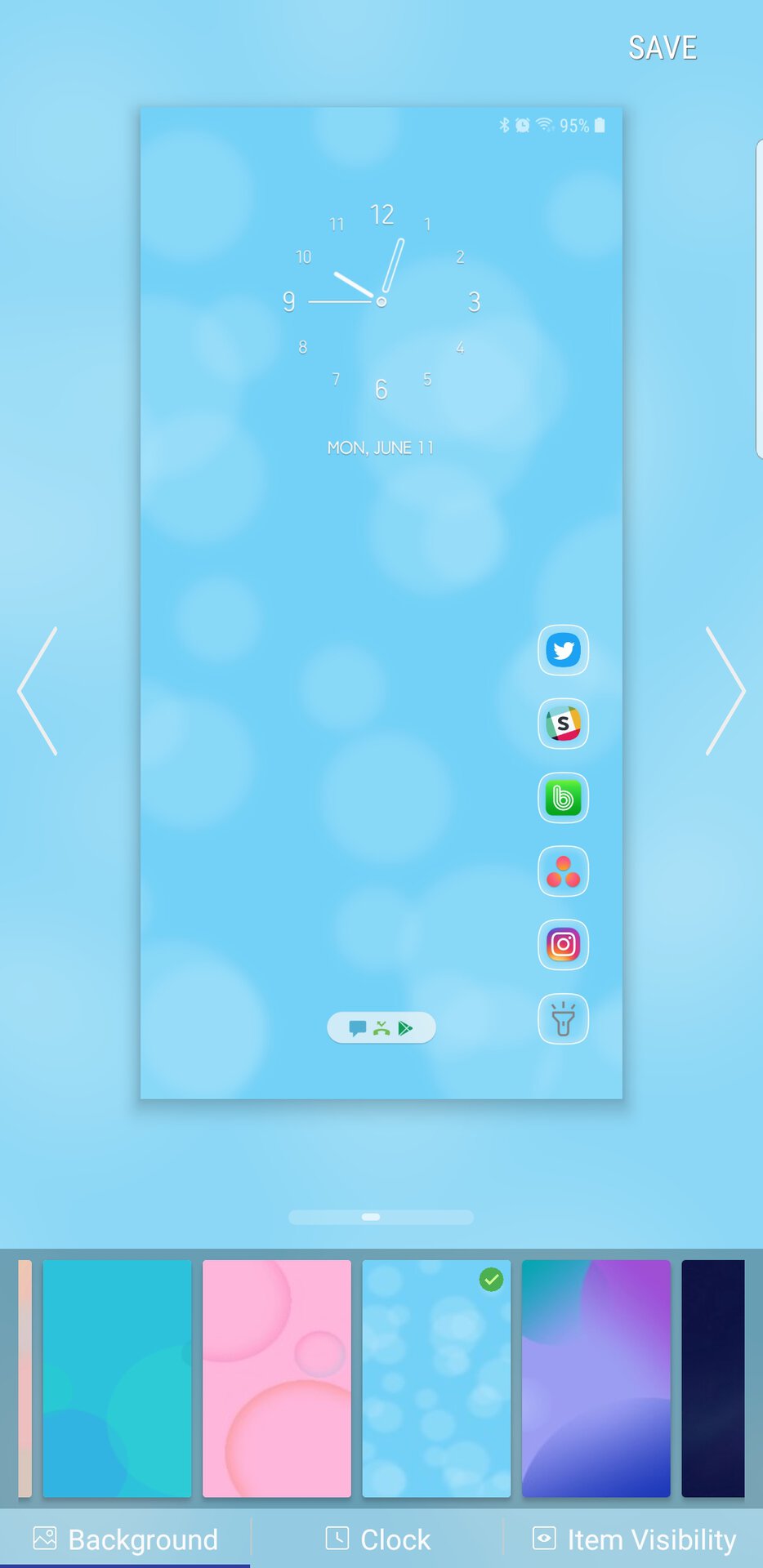 Once you have customized the lock screen to your liking, you then click apply and it will take over from the default lock screen. You can also save numerous lock screens in case you like to switch them around in different situations. I had a lot of fun choosing customization options and I especially like the analog-style clock face that you can see in the screenshot above.