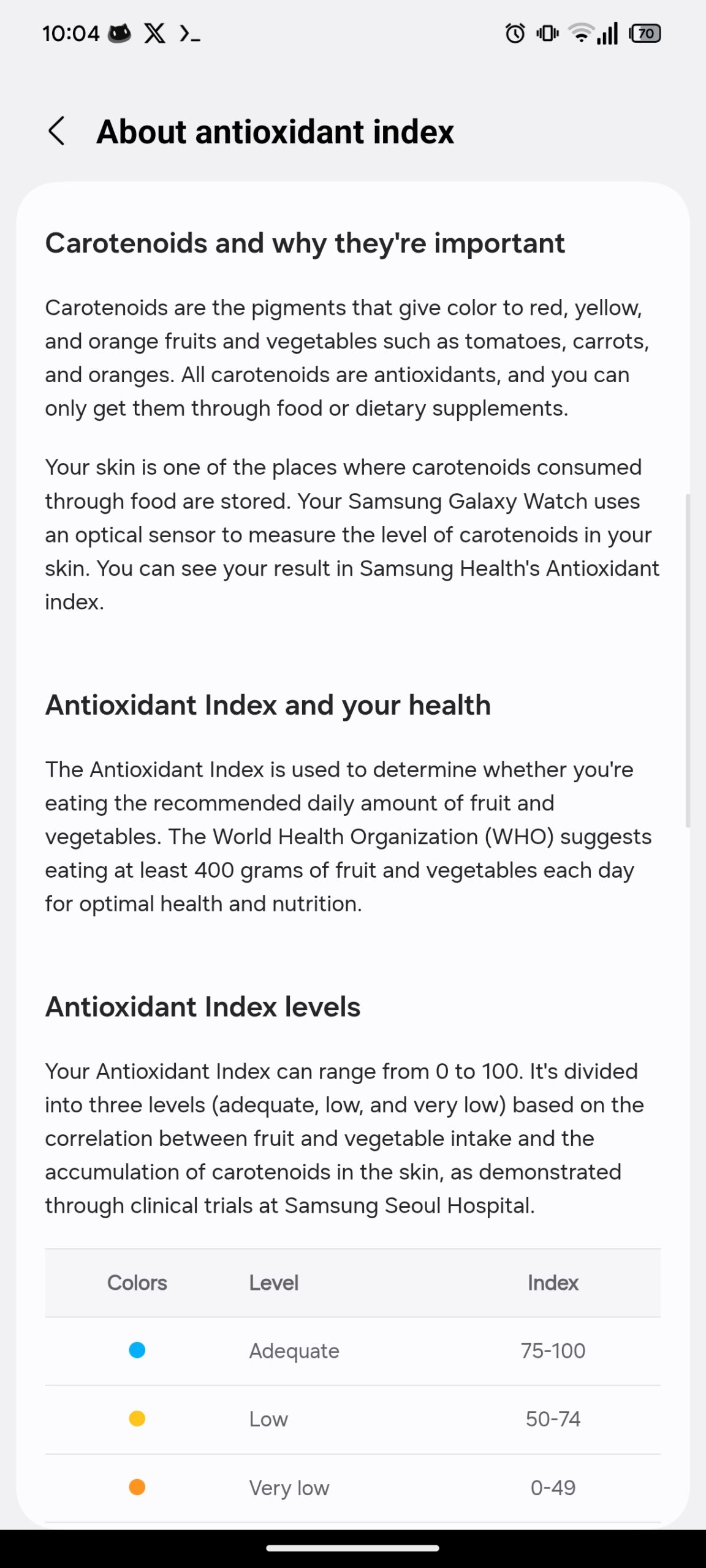 Samsung Health also has a lot of good information about the antioxidant index for users interested in learning more about it:
