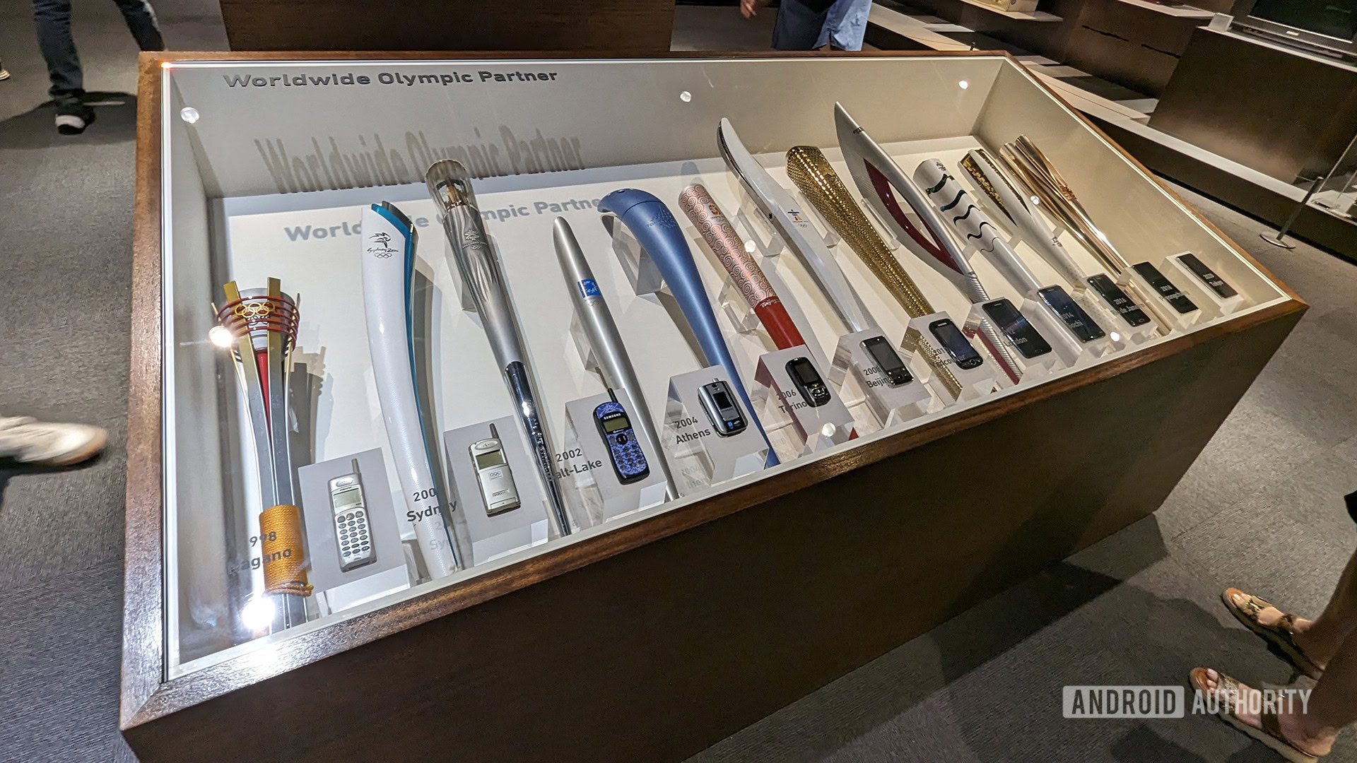 One of the coolest displays in this area was a glass case filled with Olympic torches and the official smartphone connected with that year’s event. Samsung has long been a sponsor of the Olympics, so there were a dozen phones to see, from 1998’s N206 to 2021’s Galaxy S21. It was like seeing Samsung’s smartphone progression over 25 years happen in just a few seconds.