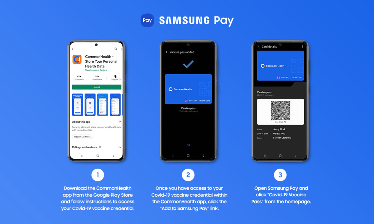 To make your vaccination status more accessible, The Commons Project is partnering with Samsung to allow Samsung smartphone owners in the US to digitally download, store, and show their vaccination status using Samsung Pay.