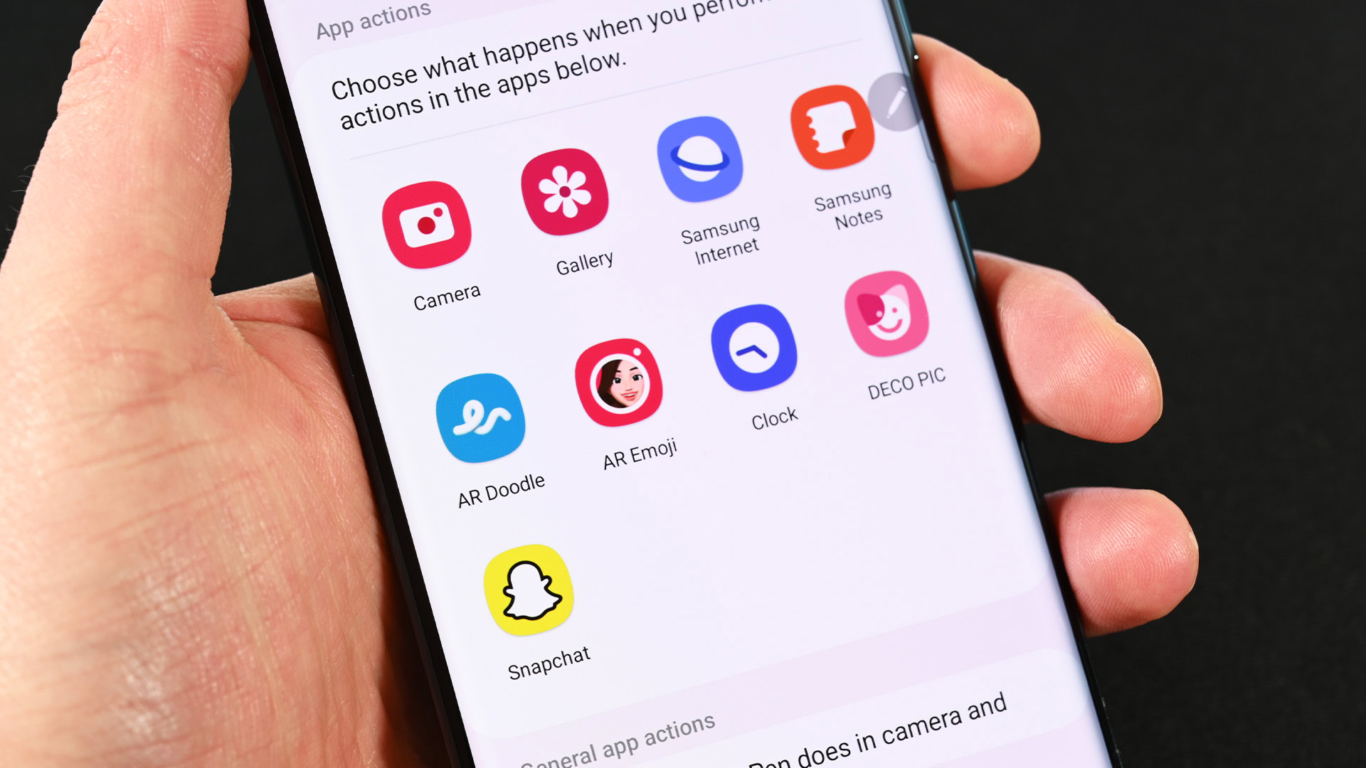 General app actions: The S Pen has master controls for cameras and music playback. Samsung doesn’t even require developers to include support. Your phone knows if you’re using a media or camera app. You can turn these master controls off but can’t edit or customize them.