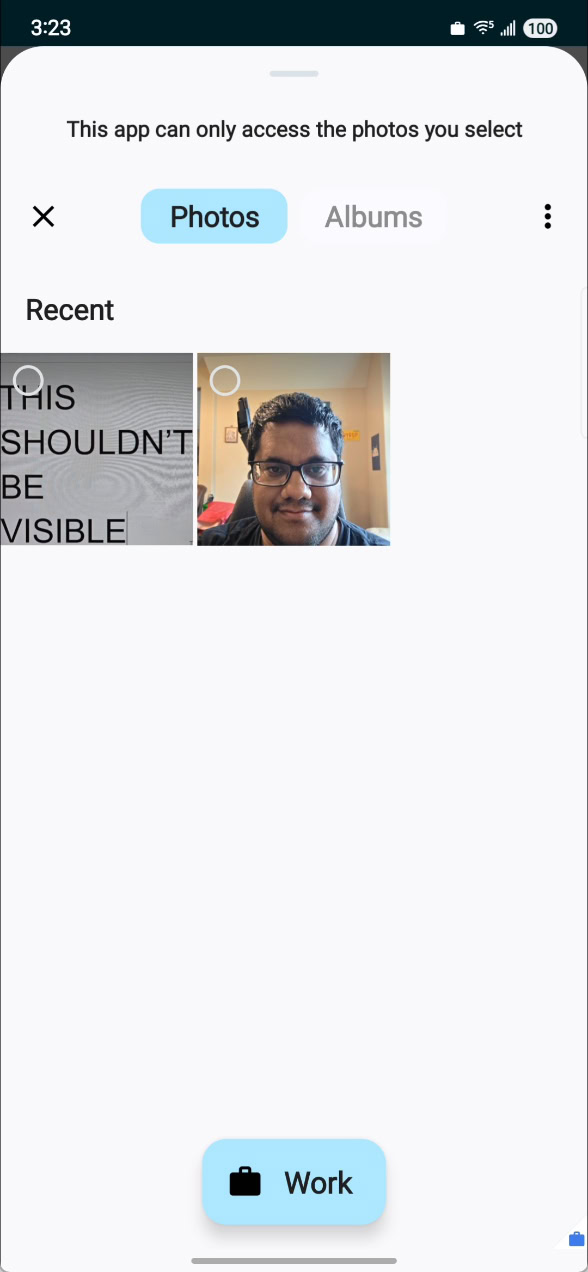 On the bright side, this flaw doesn’t extend to getting broad access to all files stored in the Secure Folder. In our testing, we noticed that the Android system file picker blocks access to Secure Folder files even if the file picker is accessed through a “work” app. This means that only photos and videos are at risk of being accessed outside the Secure Folder.