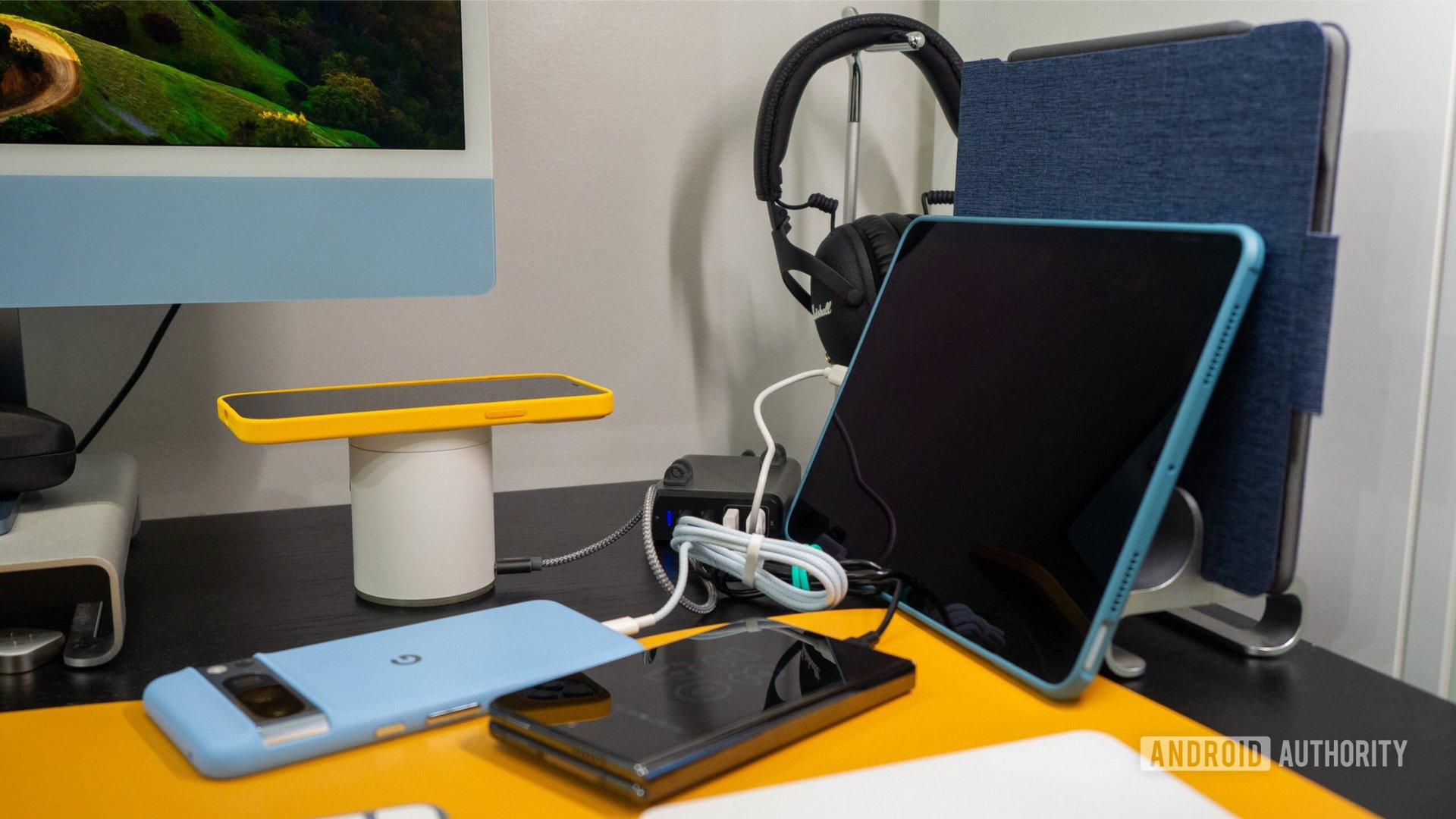 My current setup is the one you see above. The iPad and Kindle Scribe go on the farthest slots and, since I don’t need them frequently enough, I only charge them when they start running low. The other two slots house the phones I’m currently testing, reviewing, or just checking things on. And finally, the wireless pad acts as a catch-all for my wireless earbuds and whatever phone I happen to be using the most at the moment. It also saves me from bringing out the Lightning cable each time I need to top off my older, USB-C-less testing iPhone.
