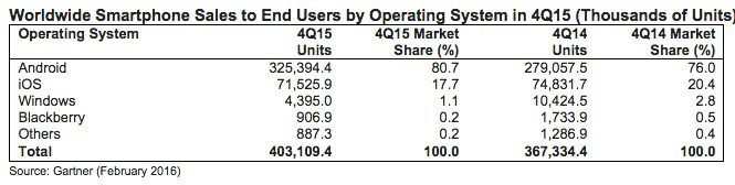 So who grew in Q4 2015? Certainly not Apple, which actually saw iPhone sales decline 4.4 per cent when compared to Q4 of 2014.