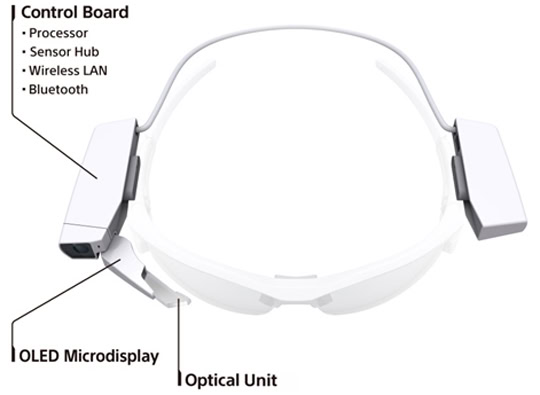Sony is currently only working on the display module thus far, so we won’t see the final product for a long time. However, the company mentions that they plan on mass-producing this product sometime within the coming year. The general build of the wearable is extremely similar to Glass – both have a single OLED display projecting onto a glass pane over the right eye, Wifi and Bluetooth capabilities – but the aim of Sony’s product is a bit different. The company is currently seeking out potential customers, such as eyeglass manufacturers that tailor their products to sports or entertainment-minded use cases, as well as companies that provide business solutions using wearable tech. Sony’s product can be used on any normal pair of glasses or sunglasses, making it much more open that its Glass counterpart.