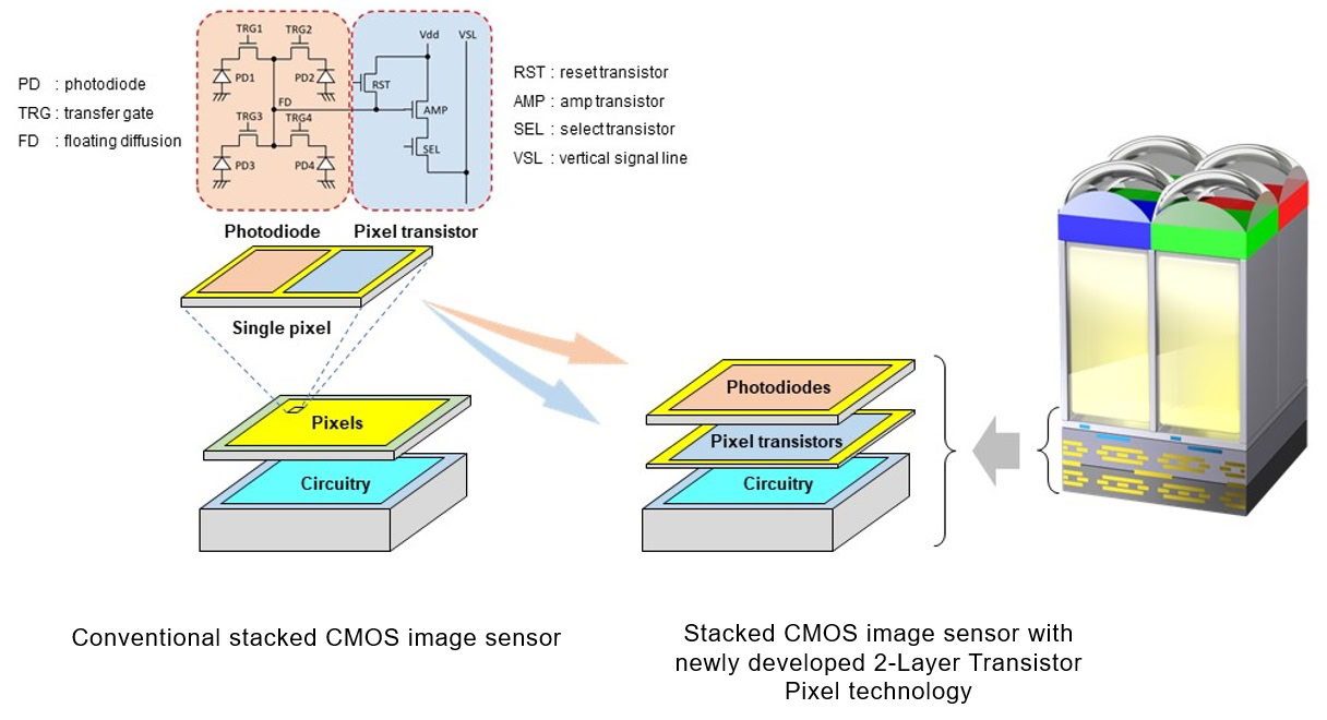 - This tech sees photodiodes and pixel transistors occupying different substrates.