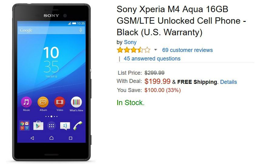 M4 Aqua by #Xperia now available for $199 only on @amazon Watch the full video and Buy Now: https://t.co/EdAbgEcs6n— Sony Xperia US (@SonyXperiaUS) November 24, 2015
