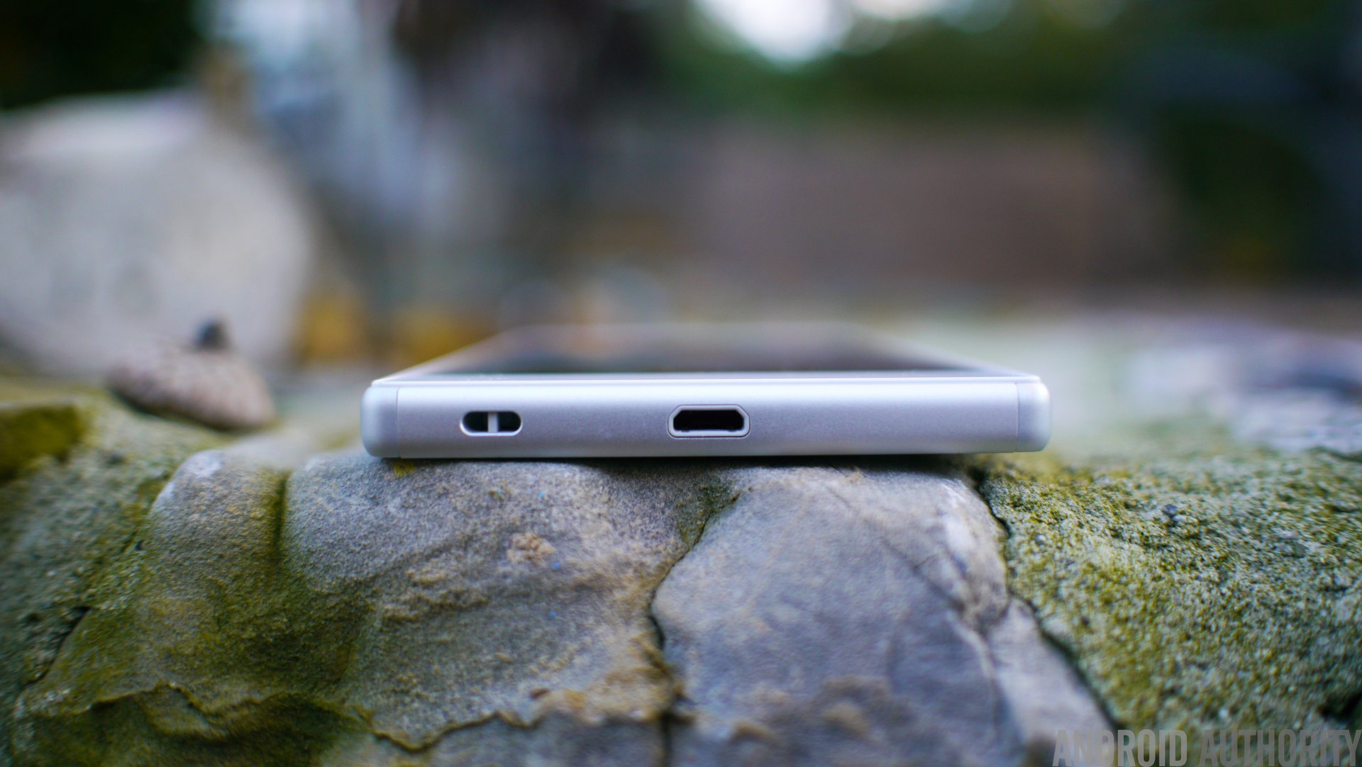 The front of the phone sports the 5.2 inch HD screen, with some decently sized bezels on the top and bottom. Above it, is the front facing camera and a little notification light, that by default is white, but you have the freedom to change it. If you look a little more closely at the front of the Z5, you’ll notice the front facing stereo speakers on the top and bottom, almost hidden to keep the front of the phone looking very clean. The speakers certainly sound pretty good, though they are not very loud. Regardless, the Z5’s speakers are better than any speaker found on the bottom or back of other competitor devices.