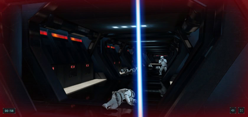 After visiting the site with your desktop, you’ll be given a link that will let you “calibrate your lightsaber” (phone). You then hold your lightsaber and then you must deal with an onslaught of stormtroopers in order to escape. The problem here is that you aren’t actually attacking them with the lightsaber (which would have been cool) but merely deflecting their blasts and bouncing them back at them to defeat them. It’s fun, but could be better. Than again, it’s not meant to be a full game, more of a “fun experience”, and you still get to control a lightsaber – hard to complain about that, right?