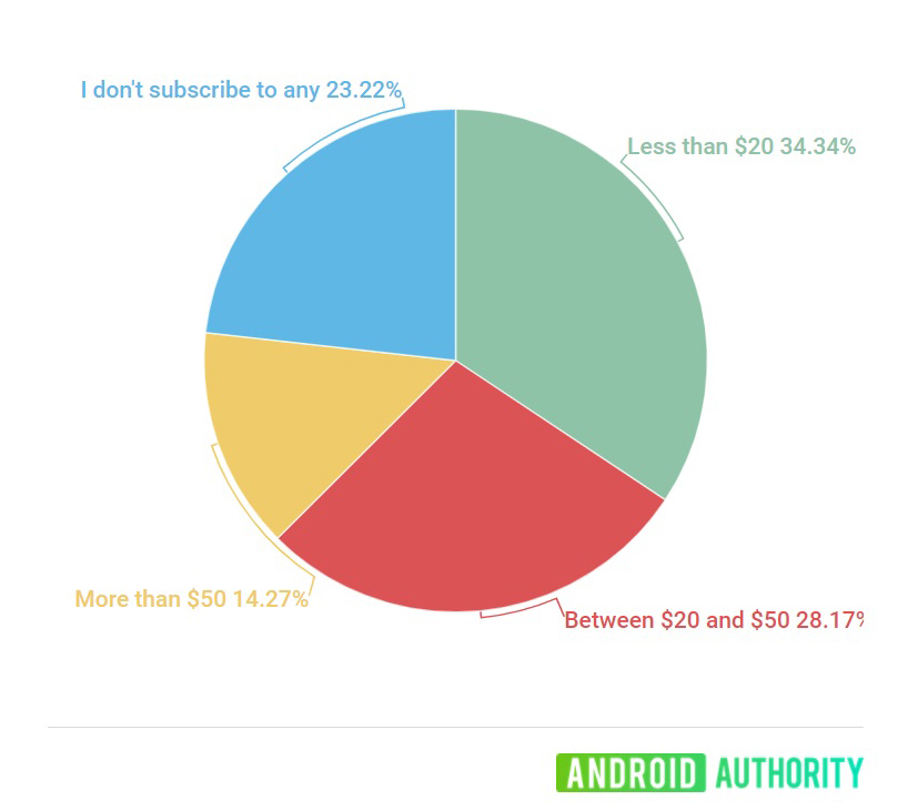 It appears the largest chunk of our readers who took this poll keep their spending in check. Nearly 35% of responders spend less than $20 each month on streaming. Meanwhile, the next-largest chunk spends somewhere between $20 and $50 each month on streaming services, while only about 15% spend over $50 each month.